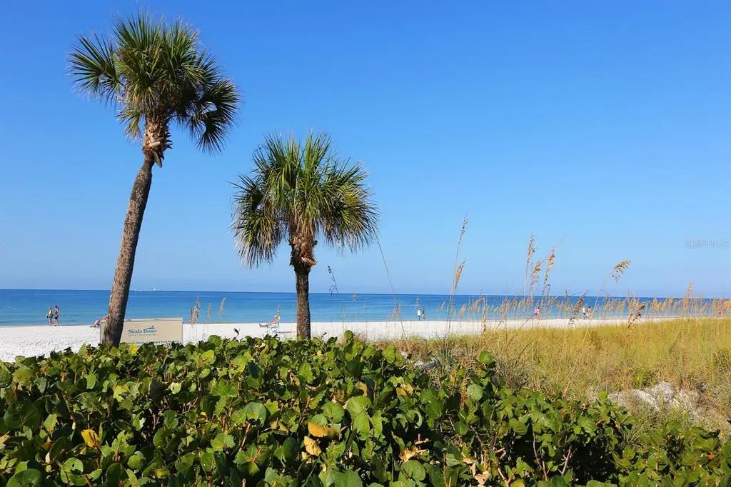 Imagine the perfect Siesta Key getaway or income producing property - this is your opportunity to own at the exclusive Siesta Dunes Condominium. This turnkey furnished, updated two bedroom, two bath unit boasts an open floor plan and lovely views of the Gulf of Mexico. The kitchen is complete with high-end cabinetry, granite countertops and stainless-steel appliances. Relax in the large owner's suite, complete with a renovated bath, a large walk-in closet and access to the screened terrace. The second bedroom is generous in size and is the perfect place to host visiting guests. Set back from the walkway, this unit offers maximum privacy and easy access to the elevator. When you are not enjoying the beach chairs and lounges on the famous white sand beaches, luxuriate in the Gulf front circular pool that is the centerpiece of the property. This complex also is host to the beach side and garden BBQ grills, the beach deck and the pavilion, and the tennis/pickleball court. Utilizing the on-site property management company makes renting the property easy and carefree. Excellent rental history and income projections are available upon request. Don't miss this opportunity to own a move-in ready condominium in the heart of Siesta Key, centrally located near the shops and restaurants of Siesta Key Village.