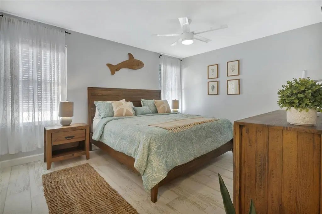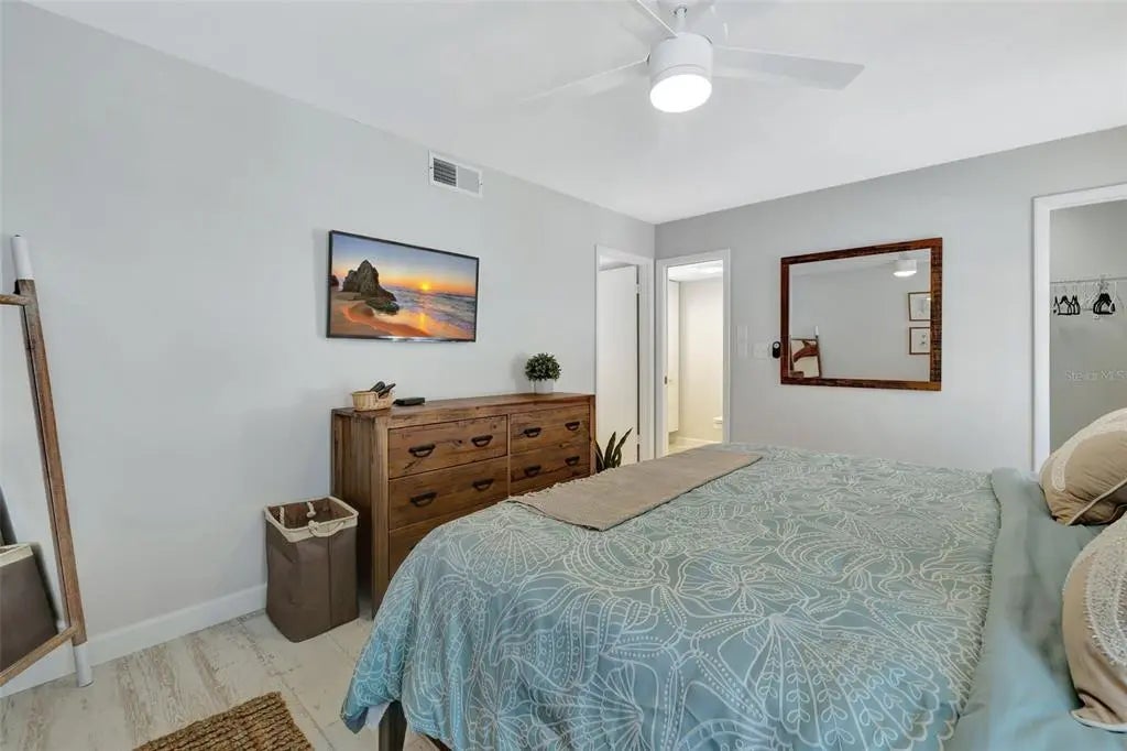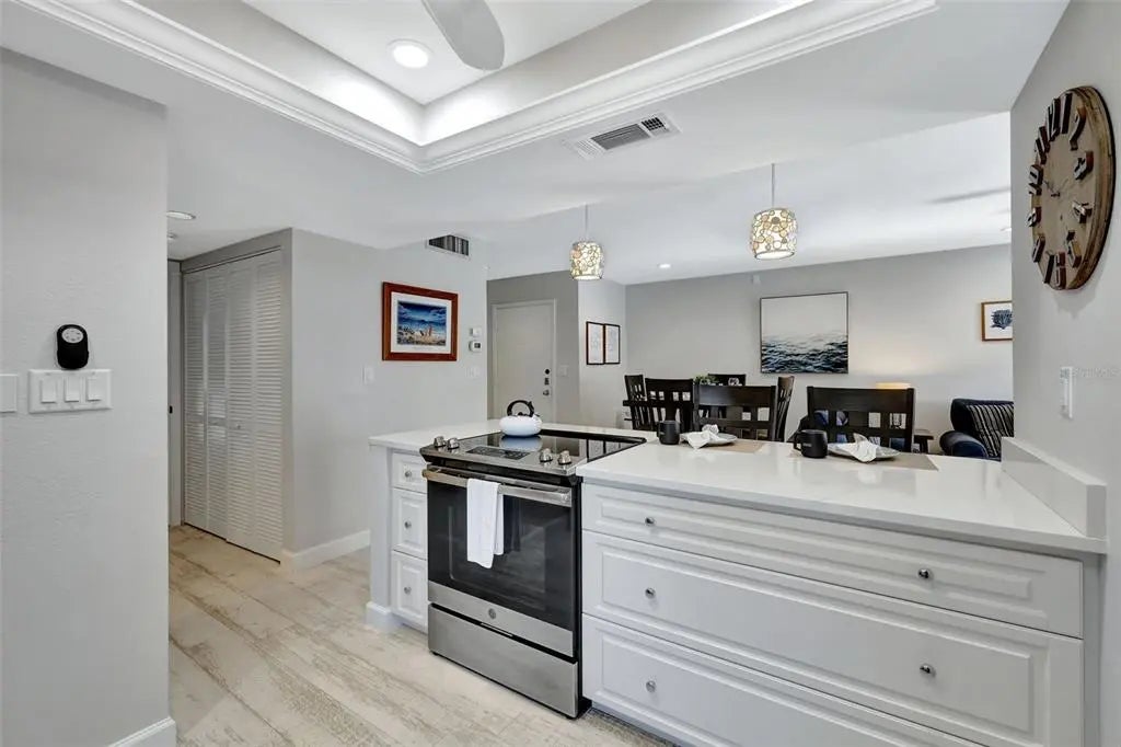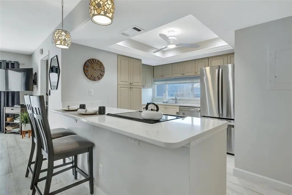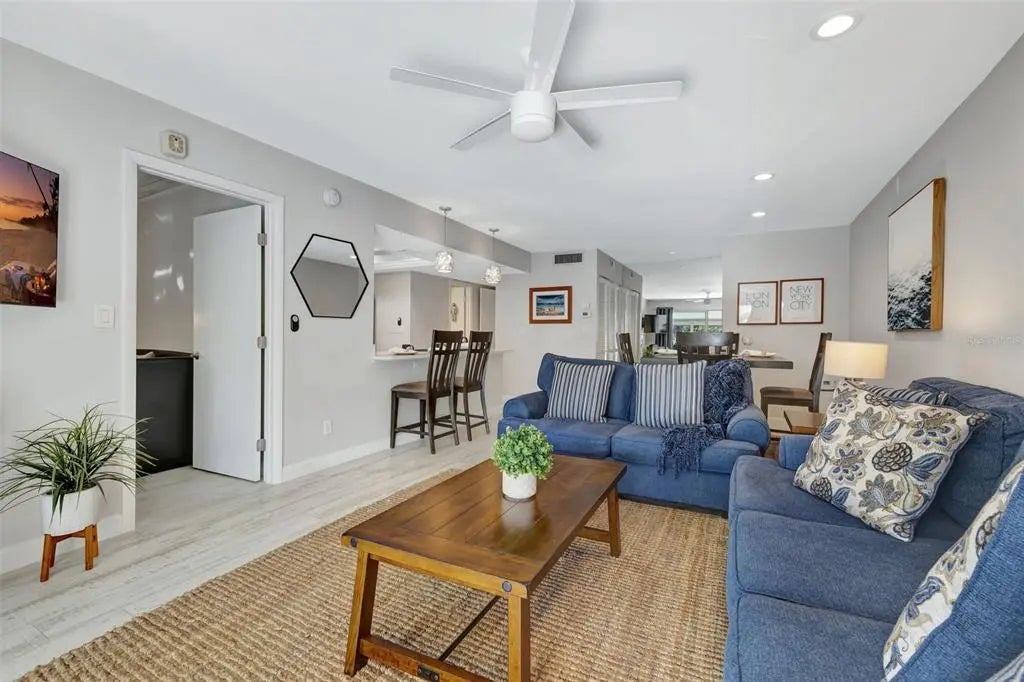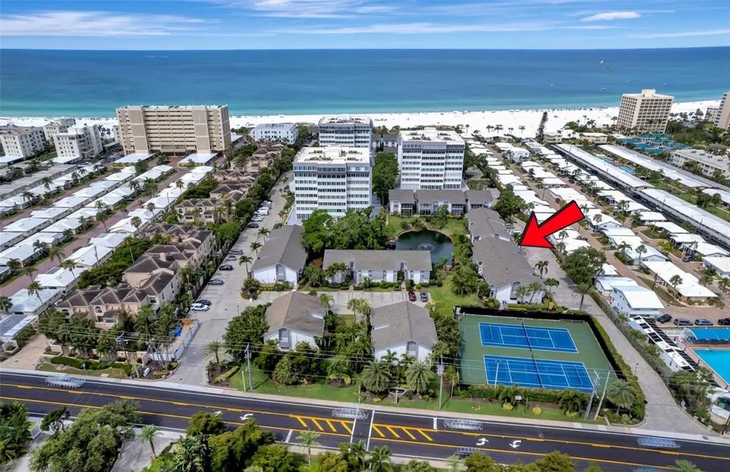 This delightful unit is just a short stroll from the tennis/pickelball courts, pool and siesta key private access beach, nestled in a quiet Gulf-side location. This 2 bedroom 2 bath condo is positioned upstairs on the 2nd floor, it offers serene views of one of the picturesque pond within the Peppertree complex. The unit has consistently generated rental income during peak season, or you could choose to enjoy it as your own beach retreat during the off-season. Updates include a renovated kitchen, bathrooms, and flooring. The spacious master bedroom comfortably accommodates a king-size bed and features a walk-in closet. The unit is well-maintained and comes with a full-size washer and dryer, a newer A/C unit 2019 and a private storage unit right outside on your back patio. Itâs offered turnkey furnished and ready for occupancy, with your own dedicated parking space. Peppertreeâs standout amenities include direct Gulf-to-Bay access, a fishing pier, tennis and pickle ball courts, two heated pools, two clubhouses, BBQ grills throughout the community, beach chairs, car wash areas, and on-site management, including a rental program. This unit is high and dry and suffered no storm damage.