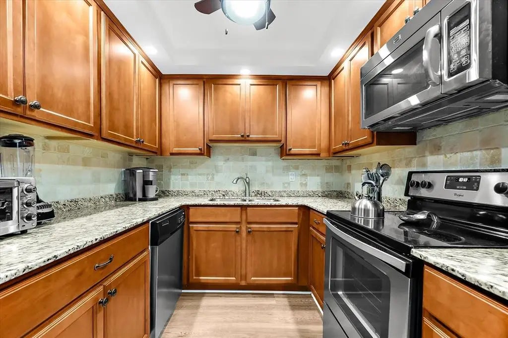 - Interior FeaturesCeiling Fan(s), Living Room/Dining Room Combo, Solid Surface Counters, Solid Wood Cabinets, Split Bedroom, Stone Counters, Thermostat, Walk-In Closet(s), Window Treatments