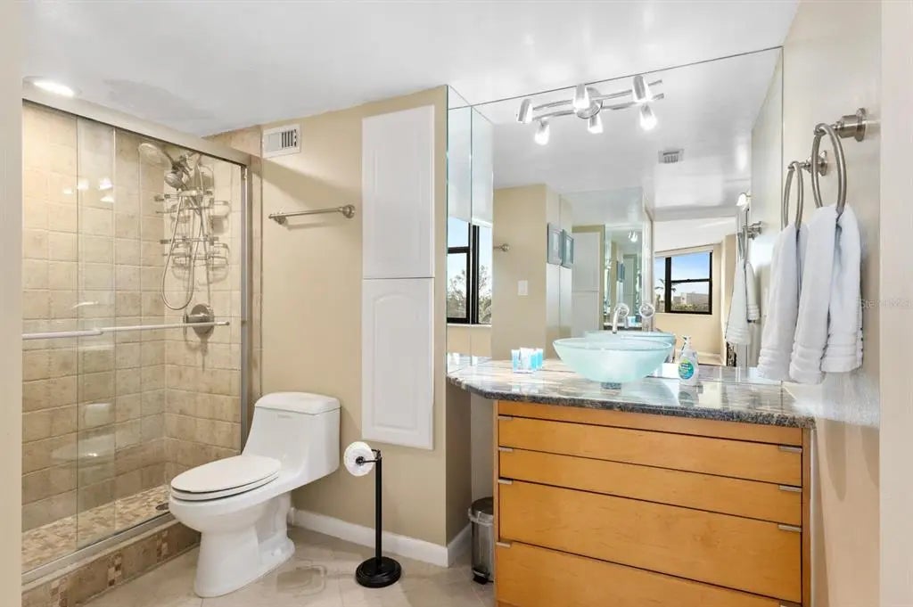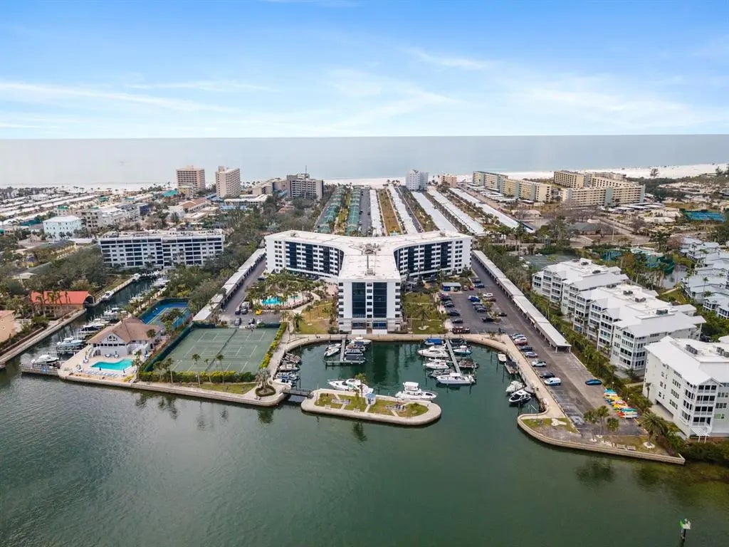 Wow, WHAT A VIEW! Gulf and sunset views from both bedrooms and the living room of this 5th-floor condo. Beautifully turnkey furnished, this large 2 bedroom, 2 bath condo boasts a double master layout, an extended living room/sunroom, and a gorgeously updated kitchen with stainless steel appliances and granite counter tops. Both bathrooms have also been exquisitely updated to maximize space and comfort. In addition to these interior updates, both bedrooms are furnished with king beds and there is a full sleeper sofa in the living room for added guests. There is also an on-site storage unit in the building that accommodates this unit. The exterior of the building recently underwent an extensive structural upgrade program that included all new hurricane impact windows and sliding glass doors for every unit. Additionally, the entire building has new exterior stucco and paint making this one of the most updated buildings on the island. Harbor Towers Yacht & Racquet is a pet-friendly bay front condominium complex with tons of resort-style amenities, including: 2 heated pools, newer fitness center, his/her saunas, 3 Har-Tru tennis courts, outdoor BBQ grilling patio, bike storage, kayak storage/launch and a beautiful marina to dock your boat (slips available first come first serve basis). Relax or fish along the intracoastal waterway. Walk to the World-Famous Siesta Key Beach to catch some rays and watch the sunset, or take the Siesta Key trolley to the village to enjoy dining, shops, and live entertainment. Live here year-round or choose to only come for part of the year. With a two-week minimum rental period and onsite rental program, you can recoup some of your carrying costs while youâre not here. DONâT WAIT! Schedule your showing now! Island-style living starts here. 360 virtual tour is also available.