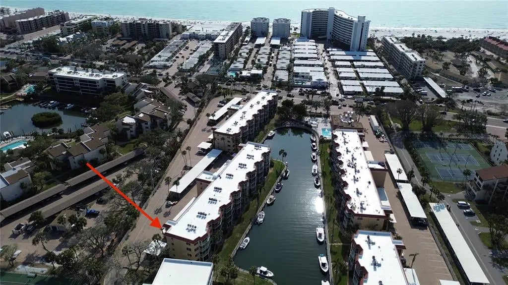 This appealing corner residence located on the second level in the Albacore Building inside SIESTA HARBOR offers the convenience of a walk-up or elevator access. This home boasts a large covered balcony showcasing stunning canal views and beautiful landscaping. Community docks are available on a first come first serve basis; accommodating boats up to 30 ft. Deep water canal with direct access to the Intracoastal. Boating is not complicated when you can dock behind your residence! Natural light pours into the combined dining and living area from the numerous extra windows being a corner unit. The active clubhouse and vibrant over 55 community add to the appeal of Siesta Harbor. Residents enjoy a heated pool, outdoor spa, indoor sauna, fitness room, shuffleboard court, renovated clubhouse featuring a full kitchen, and outdoor barbeque area. Residents also have a dock/fishing pier on site. Residents also enjoy private beach access directly across the street! This home features tile and luxury plank flooring throughout and comes turn-key, fully furnished. Just bring your bathing suit and start enjoying the island lifestyle. Additionally, you have the option to rent it out on a monthly basis when not in use. HOA fees cover the building exterior, cable, escrow reserves fund, fidelity bond, flood insurance, ground maintenance, recreational facilities, trash removal and water/sewer.
