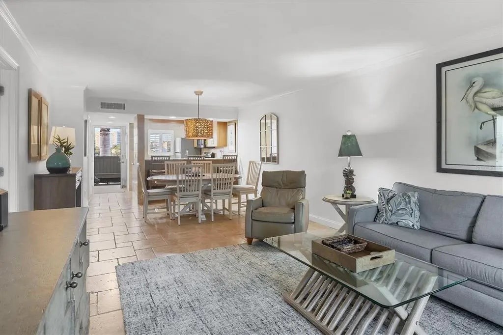 Under contract-accepting backup offers. Experience coastal living at its finest in residence #300 at Siesta Dunes, ideally on renowned Siesta Key Beach. This meticulously remodeled two-bedroom, two-bath condominium offers 1,150 square feet of luxurious living space on the third floor, providing a tranquil ambiance and a sense of escape. Crown molding accents the professionally decorated interior, creating a sophisticated atmosphere. Sold turnkey furnished, this residence offers a seamless transition into upscale beachside living. Go inside to find chiseled travertine tile flooring throughout, adding natural coastal charm. The chef’s kitchen is equipped with granite countertops, stainless steel appliances and maple cabinetry, blending style and functionality. French glass doors open to a private lanai terrace surrounded by lush garden views. The lanai is enclosed with hurricane-resistant sliders, while the primary suite features hurricane-resistant windows for added peace of mind. The primary suite also includes a custom-organized walk-in closet, enhancing storage and convenience. A convenient stackable washer and dryer are in the unit. Additional features include an assigned covered carport, a private storage closet, ample guest parking and access to the building elevator. Siesta Dunes is a gated community offering a wealth of resort-style amenities, including a heated pool and spa for year-round enjoyment, a beachside deck, pavilion, clubhouse, and tennis and pickleball courts. Utilizing the on-site property management company makes renting the property easy and carefree. With excellent rental potential, two-week minimum stays from January 15 through the end of April and one-week minimums the rest of the year, this condominium is a compelling investment opportunity as well as a personal retreat. Siesta Dunes is in a good location, making it easy to explore Sarasota’s world-class dining, shopping and entertainment. Siesta Key Beach is just a short distance away, recently named the No. 1 beach in America by TripAdvisor. Renowned for its powdery white sand, clear waters and stunning sunsets, it’s no wonder Siesta Beach is considered the pinnacle of coastal living. Whether you seek a full-time residence, a luxurious vacation retreat or a high-value investment, this extraordinary property exemplifies the best of gulf-front living.