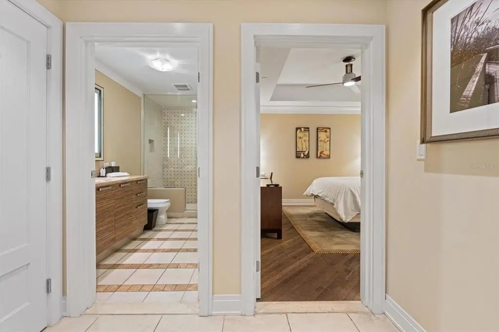 - Interior FeaturesCeiling Fan(s), Crown Molding, Open Floorplan, Solid Surface Counters, Solid Wood Cabinets, Split Bedroom