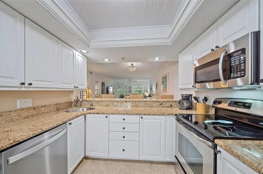 Under contract-accepting backup offers. Welcome to paradise on Siesta Key! This delightful elevated first-floor one-bedroom, one-bath unit in the highly sought-after Gulf and Bay Club Bayside combines comfort, style, and unbeatable convenience—with no flood or storm damage. Enjoy direct deeded beach access just across the street to world-famous Siesta Key Beach, and embrace true resort-style living with incredible amenities at your fingertips. Step inside to an open-concept floor plan with a spacious living/dining area, a large eat-in kitchen, and a fabulous glassed and screened lanai overlooking lush tropical landscaping. The comfortable bedroom includes an updated bath, and the unit is complete with a private one-car garage, in-unit washer and dryer, and turn-key furnishings—ready for you or your guests. This is one of the largest one bedroom available on Siesta Key! Important upgrades include a new electrical panel, AC, and water heater—all replaced in 2022, offering peace of mind and modern efficiency. Gulf and Bay Club Bayside features: Two resort-style pools Tennis and pickleball courts Newly renovated fishing dock Walking paths, boat loading zones, and four BBQ areas Clubhouse for private events Freshly painted buildings with new metal roofs This weekly-rental-friendly community also offers onsite management, making it an exceptional income opportunity for investors or those seeking a flexible-use property. Location couldn’t be more attractive—cross the road for beach access, or hop on the free trolley to explore Siesta Key Village or South Siesta. Park your car and instantly feel like you're on vacation! Live the island lifestyle at Gulf and Bay Club Bayside—where coastal charm meets modern convenience.