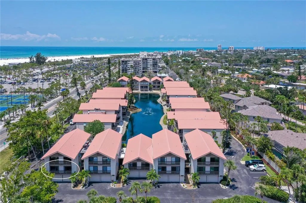 Enjoy this ultimate beach getaway and investment opportunity! This updated 2-bedroom 2 bath townhome is located directly across from Siesta Key beach and offers a generous split-bedroom and bi-level layout. Featuring high ceilings, a large light-filled eat-in kitchen, inside laundry, separate dining and living room areas and a spacious balcony overlooking the serene lake. The master bedroom suite also opens onto a balcony and includes an en-suite bathroom with ample closets and a dressing area. Our House at the Beach allows for weekly rentals, making for fantastic investment potential, or a perfect place to call home. New Hurricane Impact windows and sliding glass doors are being scheduled for installation at the Lake Houses. The central location on Siesta Key is unbeatable, and with your own garage, beach parking will never be a concern again. Simply load your beach cart and enjoy the breathtaking sunsets or catch the Siesta Breeze Bus to Siesta Village, South Siesta or Downtown Sarasota. Our House at the Beach is a well-maintained complex with a heated swimming pool, two tennis courts, pavilion, grilling area, and on-site rental management. Just minutes from Siesta Key Village where you can explore a variety of restaurants and shops. This unit is not only a perfect beach escape but also a smart investment opportunity.