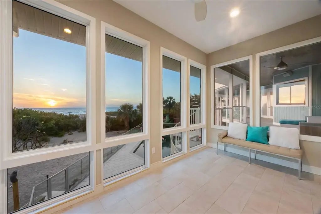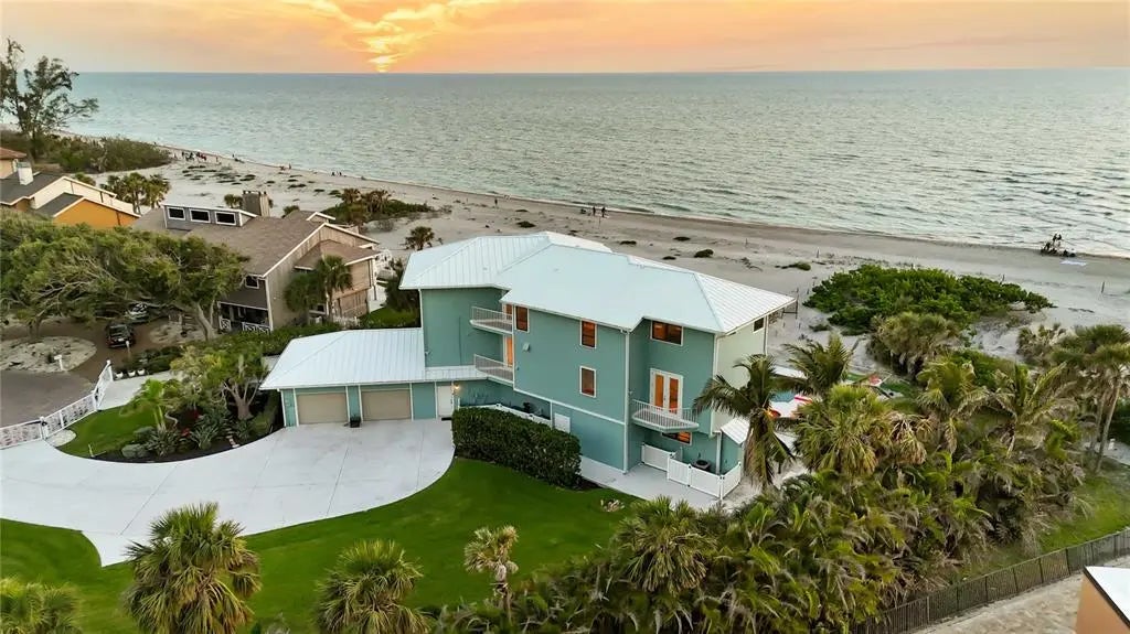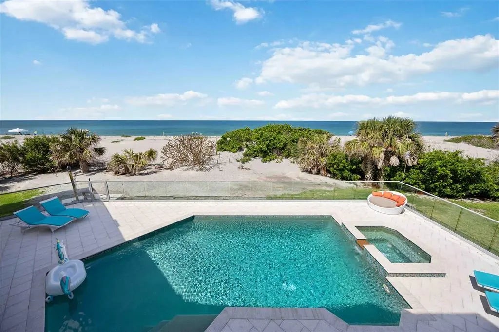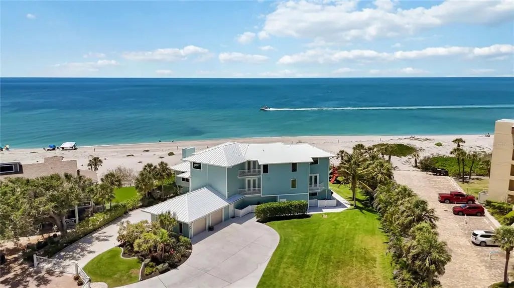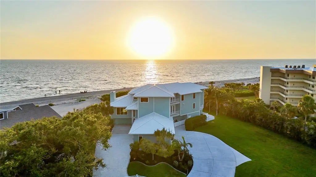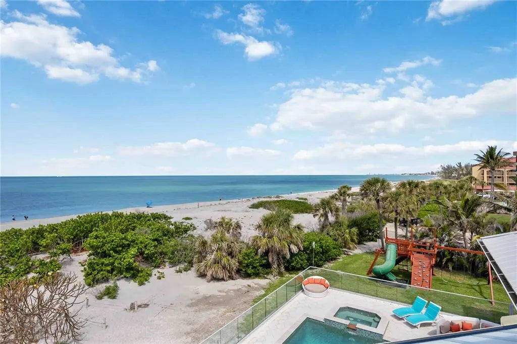 Exclusive Gulf Coast Luxury Beachfront Estate with Private Gulf Access and Endless Ocean Views Welcome to one of the Gulf Coast’s most private and luxurious beachfront estates—an extraordinary opportunity to own a rare stretch of direct Gulf frontage in Florida. Tucked away at the end of a quiet cul-de-sac and secured behind dual gated entrances, this expansive oceanfront property is enveloped in lush tropical landscaping and designed for those who value seclusion, sophistication, and long-term legacy. Boasting 233 feet of pristine beachfront along the Gulf of Mexico, this remarkable estate spans over 8,000 square feet under air and has been completely reimagined through a meticulous, high-end renovation. It artfully blends timeless elegance with resort-style comfort, offering panoramic water views from nearly every room. Here, no neighbors interrupt the horizon—only serene coastal breezes and iconic Florida sunsets that feel like they belong to you alone. Designed for multi-generational living or grand-scale entertaining, this coastal residence features five private bedroom suites—including a separate in-law or nanny suite—as well as a dedicated home office that can serve as a sixth bedroom. Two full gourmet kitchens, five expansive balconies, and an elevator servicing all three levels ensure exceptional comfort and convenience throughout. The main living areas showcase open-concept design, natural light, and breathtaking vistas that define luxury Gulf Coast living. Resort-level amenities abound, including a heated, saltwater pool that reaches 10 feet deep, a hot tub with massage jets, a full steam room, and an infrared sauna for ultimate relaxation. A whole-home Sonos audio system, a 12-camera security network, and a powerful 60 kW natural gas generator provide modern convenience and peace of mind. Water quality is managed by an advanced reverse osmosis filtration system and whole-house conditioner, while a 70-foot private well supplies multi-zone irrigation for the manicured grounds. The property also features a unique drive-through two-car garage with an air-conditioned storage loft, three HVAC zones plus a mini-split system, LED color-changing lighting throughout, and outdoor enhancements such as a built-in gas grill, a fire pit, and an illuminated waterfall feature—ideal for entertaining under the stars. An adjacent buildable lot expands your opportunity for growth, allowing space for a future guest house, expanded estate grounds, or added privacy. This is more than a home—it's a one-of-a-kind legacy property offering privacy, luxury, and an irreplaceable position along Florida’s Gulf Coast. Now available exclusively by private appointment, this luxury beachfront retreat is the ultimate in coastal real estate. Don’t miss your chance to own a slice of Gulf-front paradise.
