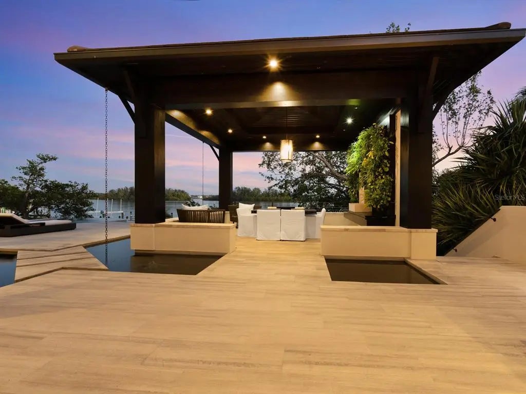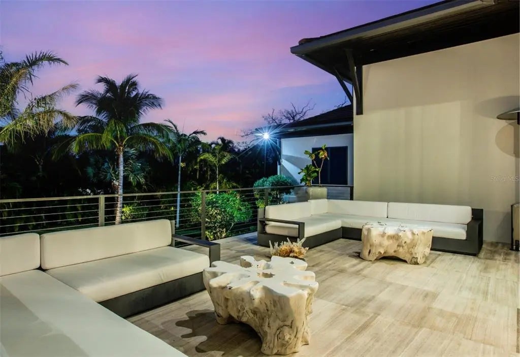 Relax and take in the positive energy of Lotus-style living in this one-of-a-kind Balinese-inspired resort compound on north end of the world-famous Siesta Key. Nothing is needed to begin your Zen journey as the property comes completely furnished down to dishes, silverware and a Buddha living wall. The coexistence of indoor and outdoor space blends over 8,000 square feet of indoor space with thousands of square feet of patio and pool area. An outdoor oasis offering an infinity-edge pool with a swim-up bar, a sunken fire pit lounge within the pool, a spa, an outdoor kitchen, a dining pavilion with a living plant wall and an open-air living room with a fireplace. A koi pond with stunning built-in footbridges stretches nearly the entire length of the home, enhancing the serene ambiance of the outdoor space. Spanning over an acre with more than 700 feet of waterfront, the property is a masterpiece of luxury, designed for effortless relaxed living or island-style entertaining. A custom-designed driveway welcomes you to a breathtaking entrance, where waterfalls and fire features set the tone for the experience that awaits inside. Expansive walls of glass, seamless indoor-outdoor transitions, and rich wood and stone flooring throughout create a striking, cohesive aesthetic. The thoughtfully designed interior boasts multiple living spaces, including a game room, home theater, fitness room, meditation space and an impressive 8-plus-car garage. For the waterfront enthusiast, a well-equipped boat dock, a separate waterfront garage, and a paddleboard/canoe launch provide unparalleled access to pristine waters. This exceptional residence also features a newer seawall, full-house generator, Crestron home automation, a three-stop elevator and a whole-house reverse-osmosis water filtration system, ensuring convenience and peace of mind. An island paradise, this estate offers unmatched privacy while remaining just moments from Sarasota’s vibrant shopping, dining and world-renowned cultural attractions. Don’t miss this rare opportunity to own a move-in-ready masterpiece on Siesta Key – home to the #1 beach in the USA (Tripadvisor).