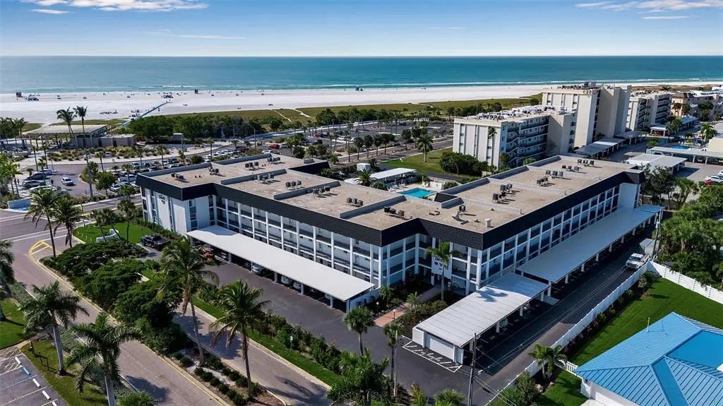SELLER SAYS BRING ALL OFFERS! MAJOR PRICE IMPROVEMENT!! Reduced over 75k! Have you ever wondered what it's like to own a Siesta Key sunset? Throw on your swimsuit, grab a towel and take a short stroll across the street, because here at Beach Way, you can't get much closer! Embrace your very own next-level Florida lifestyle with this exceptional opportunity. This second floor 2-bedroom, 2-bathroom condo is ideally situated and directly across the street from the world-renowned Siesta Key Beach, continuously celebrated for its powdery soft, white quartz sands and clear waters. This property is being offered fully furnished and is move in ready, presenting a unique chance to personalize your very own dream retreat whether as a permanent residence or a vacation getaway. This unit beams with natural light throughout, showcasing its rare beauty. With a minimum lease period of one month, up to twelve times a year, it also offers potential for rental income. Rental Proforma attached. As you enter the front doors to this beach oasis, prepare to be impressed by an open-concept kitchen that seamlessly flows into the living and dining areas, extending out to a private screened-in lanai where you can take in partial glimpses of the Gulf, creating a perfect setting for relaxation and entertaining. Need a little space? Both bedrooms feature walk-in closets, providing ample storage and comfort. In addition, the unit overlooks the community's heated pool which is maintained at 85 degrees year-round. This well-maintained community was built in 1970, offering a host of amenities designed for convenience and leisure. Residents have access to a community room with a full kitchen for social gatherings, picnic and grilling areas, elevators, laundry facilities on each floor, and a personal storage unit. In addition, your deeded carport is located just steps from your front door, ensuring ease of access. Recent updates to building include a new roof in 2020, an updated elevator installed in 2019, re-plumbed stacks completed in 2018, the addition of new vinyl fencing in 2021. The quarterly condo association fee covers access to all the amenities, pest control, basic cable, water/sewer services, grounds maintenance, weekend on-site maintenance, and community insurance. Living on Siesta Key means more than just proximity to the beach; it's about embracing a lifestyle where every day feels like a vacation. Start your mornings with a peaceful walk along the shoreline, enjoy paddleboarding in the calm Gulf waters, or partake in beach yoga sessions at sunrise and drum circle Sundays. The island's laid-back atmosphere is complemented by its vibrant community, offering a mix of friendly full-time residents and seasonal visitors. Ready to venture out for some more fun? Siesta Key Village, just a short distance away, is the heart of the island's social scene. Here, you'll find an array of casual bars, eateries, and boutiques, perfect for evening outings or weekend brunches. The community's eclectic vibe ensures there's always something happening, from local festivals to live music events. Other close by attractions include the Ringling Bridge, Downtown Sarasota and St. Armands, close proximity to top rated schools and hospitals, SRQ Airport and University Town Center. Don't let another Season pass you by from owning your own slice of paradise in the sand. Schedule your showing today. View property website here: https://nextlevelmediasrq.hd.pics/5600-Beach-Way-Dr-201