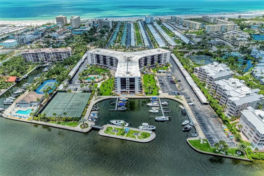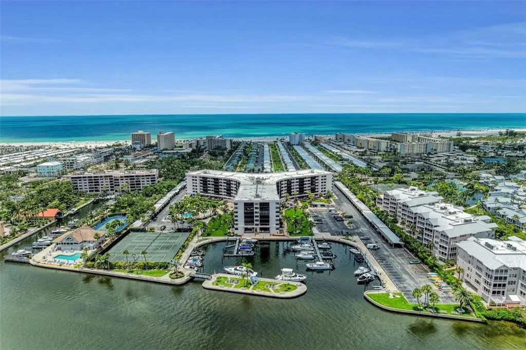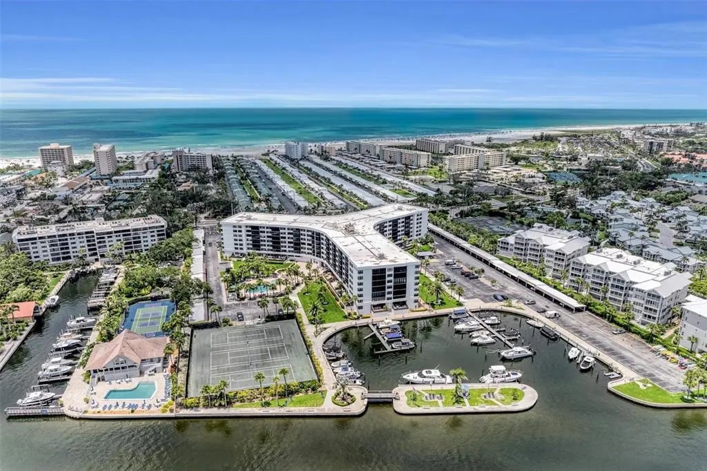 Step into the exclusive waterfront haven of Harbor Towers Yacht and Racquet Club, a true resort paradise that will capture your heart instantly. The building has recently undergone a comprehensive $13 million, four-year hurricane hardening and structural upgrade, completed in 2024. Designed to meet the latest safety standards for hurricane and wind protection, these enhancements include impact-resistant windows and sliding doorsâall fully covered by the Seller. Remarkably, the property has sustained NO damage from Helene or Milton. This designer condominium exudes the charm of Hemingway Key West-style living, boasting over $100,000 in upgrades completed in 2024. Every detail reflects quality and elegance: brand-new AC and water heater, stunning engineered red oak wood flooring throughout, granite kitchen countertops with matching full granite backsplash, stainless steel appliances including double ovens, and rich pecan wood cabinets with soft-close doors. Additional refined touches include chair rail accents, plantation shutters, screen-shaded extended living space, and two luxurious Master Suites, both with private ensuites to ensure comfort and privacy for you and your guests. The vistas are equally breathtaking, offering mesmerizing sunrise and moonrise views over the intracoastal waterway. The property offers an array of premium amenities designed for relaxation and recreation. Enjoy two heated swimming pools, a newly renovated fitness center equipped with his-and-her saunas, three Har-Tru tennis courts, and a spacious outdoor BBQ area connected to a fully equipped clubhouse ideal for entertaining. The private marina provides direct access to the intracoastal waterway and features over 40 boat slips available via waitlist at just $3 a foot, plus dedicated storage for kayaks, paddleboards, and bicycles. A tranquil fishing area with a fish-cleaning station and a picturesque Bayfront gazebo situated on a private island further enhances the resort experience. Harbor Towers also represents an excellent investment opportunity with flexible two-week rental options. Whether you choose to utilize the onsite property management office or manage rentals independently, this community adapts seamlessly to your needs. Its prime location allows for easy access to the world-renowned Siesta Key Beachâjust a short walk awayâor a quick ride on the Siesta Key free trolley to the Village, where exceptional dining, boutique shopping, and live entertainment await. Offering an ideal blend of luxury and practicality, Harbor Towers is perfect whether you're seeking a permanent residence, a vacation retreat, or an income-generating property. This resort-style community truly delivers the best of coastal living.