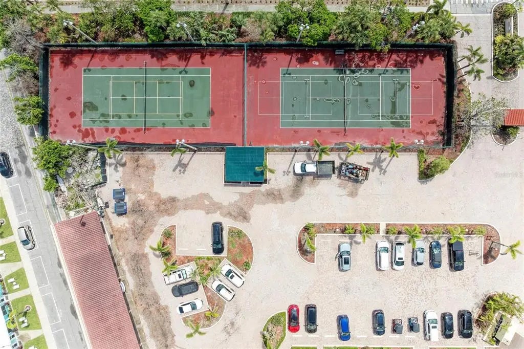 - Exterior FeaturesBalcony, Courtyard, Lighting, Sidewalk, Sliding Doors, Tennis Court(s)