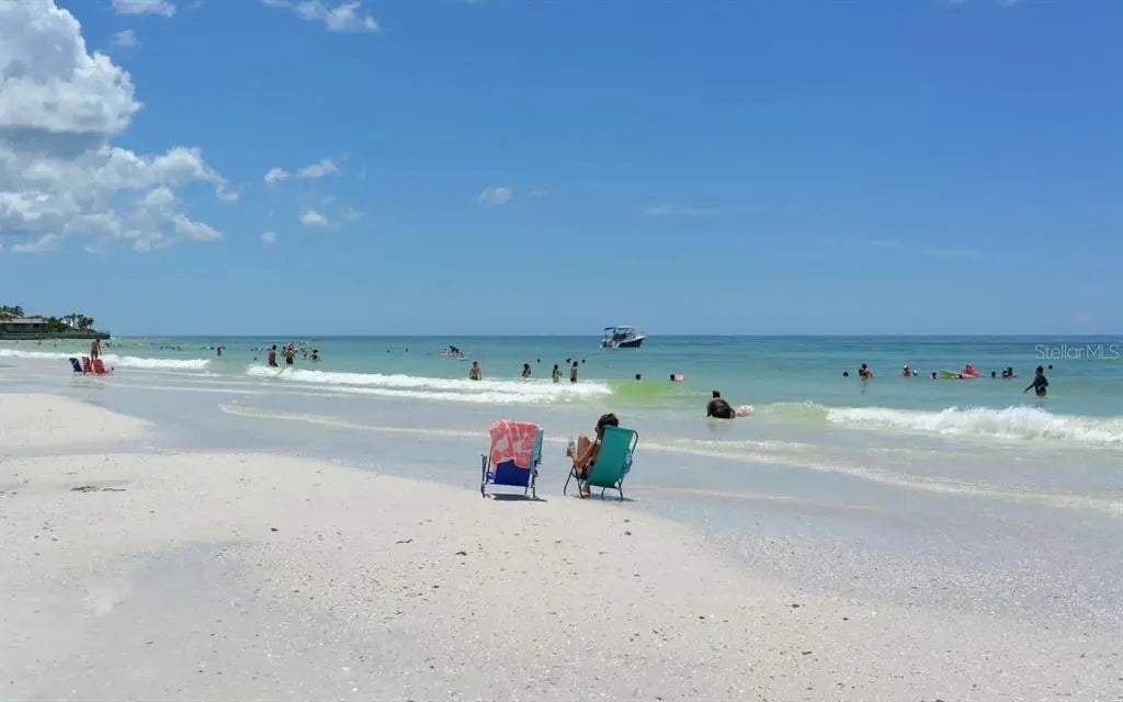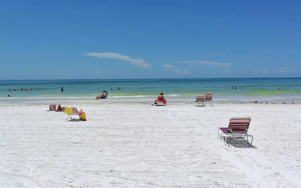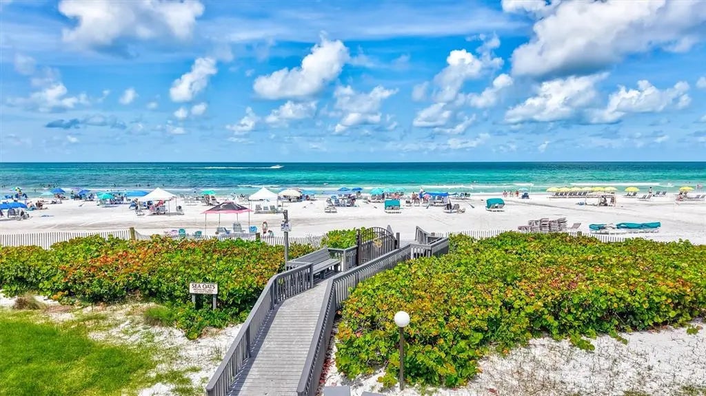 Rare, exquisitely curated beachfront condo on Siesta Key. This lightly used - meticulously cared for - end unit home has never been rented, although the community allows much desired weekly rentals generating healthy investment income. Located on Crescent Beach, known for its tranquil beach vibe, enjoy 300 feet of prime location deeded beach access with quartz-crystal, powder-soft fine white sand that remains cool even on the hottest days. This two-bedroom, two-bath condo has been renovated and designed with an upscale and sophisticated feel within a light and airy beach home. All furnishings, accessories, dishes and linens included in this TURNKEY FURNISHED condo. The open floorplan is perfect for entertaining family and friends. The resort feel primary bedroom includes a large walk-in closet and oversized bathroom. The second bedroom has been redesigned to comfortably sleep 4 with ample storage. The living room, primary bedroom and balcony all feature stunning views of the beach, gulf and Siestaâs spectacular sunsets. This condo is in Siesta Breakers, a gated complex within easy walking distance of dining, shopping, and a full-service marina with boat rentals. Play a game of tennis or pickleball on the two community courts. Leave your car at home and walk or take the free Trolley to nearby Siesta Key Village. This ideal location features easy access on and off the Key allowing more time to enjoy your coastal waterfront living. Welcome home to Siesta Key.
