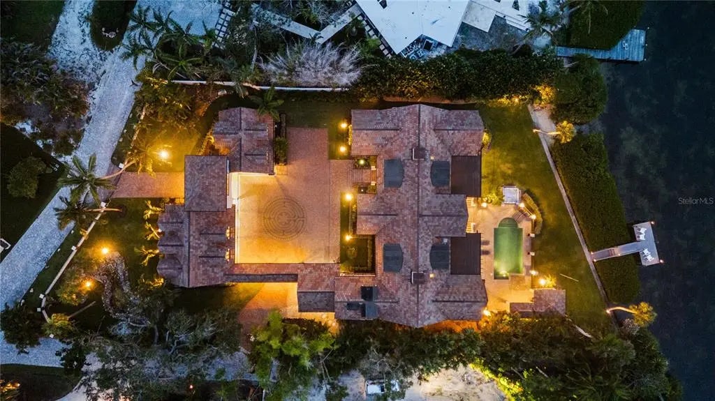 Private Island, Gated Home, Private access to deeded beach! Experience the epitome of exclusivity with unheard of waterfront views, unmatched privacy, and breathtaking, expansive vistas from your own private island retreat. Tucked away on a private island in Siesta Key’s South Cocoanut Bayou, this Tuscan-inspired estate feels like it’s been plucked from the pages of a storybook. The estate at 4315 Mangrove Place features a Tuscan-inspired central courtyard with over 4000 sq ft designed as the heart of the home. It is a grand, open-air courtyard enclosed by both the main residence and the guest villa, connected via an elegant, covered breezeway. The main residence offers soaring ceilings, intricate millwork, and expansive living spaces ideal for entertaining or quiet coastal living. A gourmet chef’s kitchen, formal dining room, library, owner ensuite located on the main level with his & hers walking closets and bathrooms, and custom home theater create a balanced blend of function and indulgence, Elevator in main residence & private elevator in guest house. Connected by a covered breezeway, the guest villa features its own living quarters, private elevator, one bedroom, full bathroom, living room and full kitchen—perfect for multigenerational living or extended guests. With six bedrooms, nine baths, a three-car garage, and an ambiance that feels like a timeless escape, this estate is more than a home—it's a legacy, a retreat, a living Castle fairytale. Outdoors, a resort-style pool and spa, and lush tropical landscaping create a serene oasis, while a private deep-water dock provides direct access to the Intracoastal and Gulf with no fixed bridges. Eligible to membership to private beach.