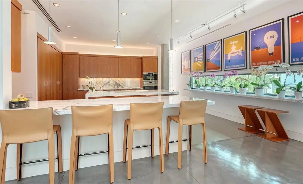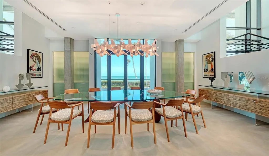 Guy Peterson's architectural masterpiece is located in Sarasota's most prestigious gated enclave. Positioned on the white sands of Siesta Key, 8250 Sanderling Road is more than a residence; it is a bold statement in modern architecture, masterfully envisioned by renowned architect Guy Peterson, FAIA. Set on 1.54 private acres with 150 feet of Gulf-front beach and 150 feet of lagoon frontage behind the gates of the exclusive Sanderling Club, this estate is a rare fusion of design innovation, artistic expression, and coastal tranquility. Widely recognized as one of Florida’s most iconic modern beach residences, the property has received top honors including the AIA Florida Test of Time Design Award, AIA Florida Gulf Coast Honor Award and the AIA Florida Excellence in Architecture Award, and has been featured in The Wall Street Journal, HGTV’s Homes Across America, Robb Report, Florida Design, Sarasota Magazine and more. It is also prominently included in Four Florida Moderns and 50 US Architects Residential and Planning, placing it among the most significant architectural achievements in the country. The home was designed as a series of four interconnected pavilions anchored in concrete and glass. It was reimagined in 2014 by the original architect, Guy Peterson, alongside Michael K. Walker and Richard Geary. The result is a striking architectural clarity that elevates the original design while introducing refined modern comforts. The sculptural façade is defined by bold horizontal lines, artful cutouts, and a seamless blend of poured concrete, steel, and sanded glass. A shell stone path leads to a dramatic entry, where the residence begins to unfold like a gallery of light and form. Inside, the interiors echo the clean geometry of the exterior. A soaring multi-level foyer acts as a central spine of the home, where light, shadow and structure interplay like a living installation. The custom-designed bar, lit by an onyx countertop, is functional and atmospheric. The dining room is framed by concrete columns and translucent glass, revealing a cinematic view of the Gulf beyond. The kitchen, anchored by warm teak millwork, features dual islands, Miele and Wolf appliances, and honed marble surfaces, creating a space as elegant as it is functional. The owner’s suite offers a peaceful retreat with a sitting area, private terrace, and coffee bar, while dual baths evoke spa-like tranquility with stone finishes and minimalist detailing. A private office with panoramic Gulf views inspires focus, while additional guest suites offer comfort and privacy with en-suite accommodations. Outside, a sprawling terrace connects indoor and outdoor living, ideal for intimate reflection or entertaining against the sound of waves. Residents of The Sanderling Club enjoy access to a private marina and beach plus 24-hour guard-gated enclave celebrated for its discretion and architectural legacy. With its distinguished pedigree and timeless design, 8250 Sanderling Road is a coastal sanctuary that honors the past, elevates the present, and secures its place among the most architecturally significant homes in on Florida’s Gulf Coast.
