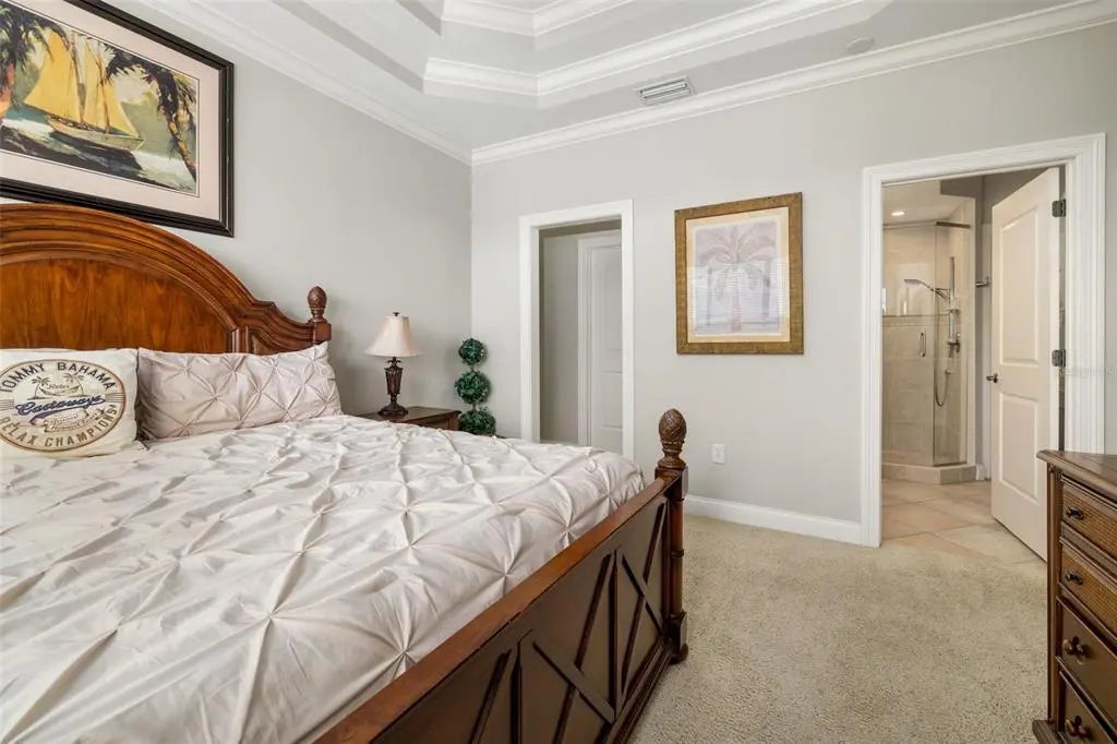 - Interior FeaturesCeiling Fan(s), Crown Molding, Eating Space In Kitchen, Primary Bedroom Main Floor, Solid Wood Cabinets, Stone Counters, Thermostat, Window Treatments
