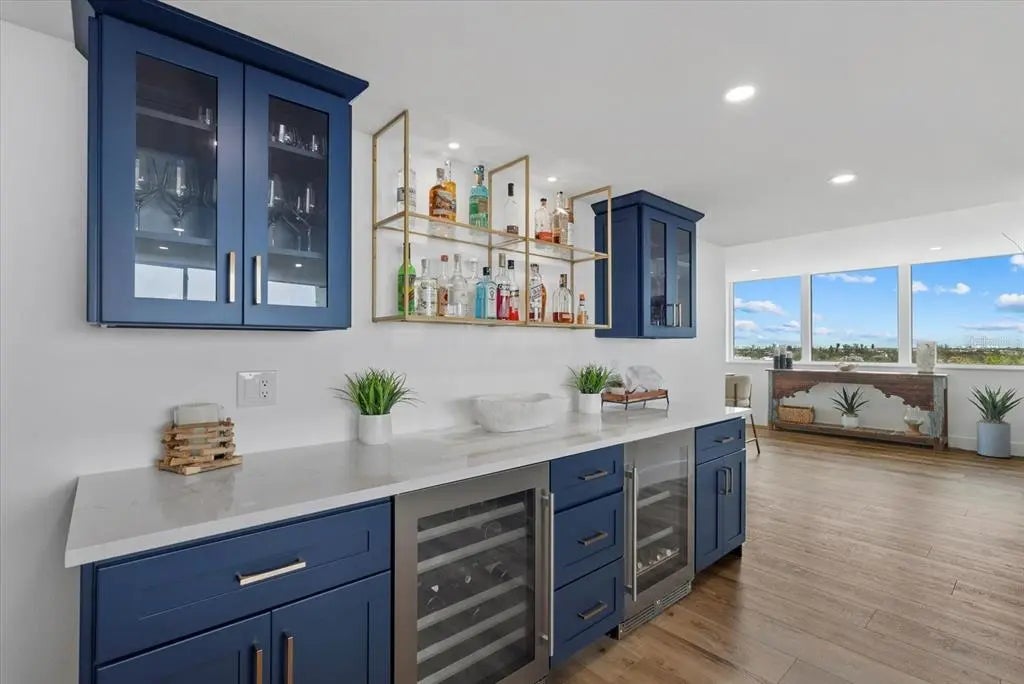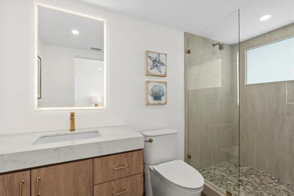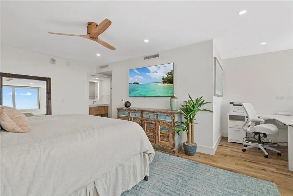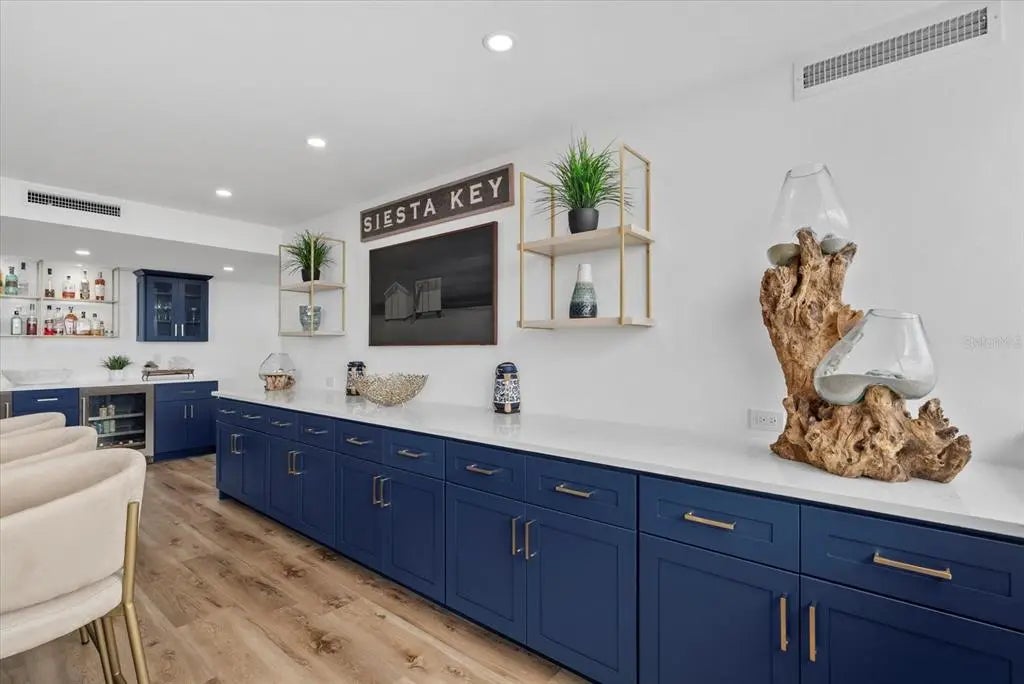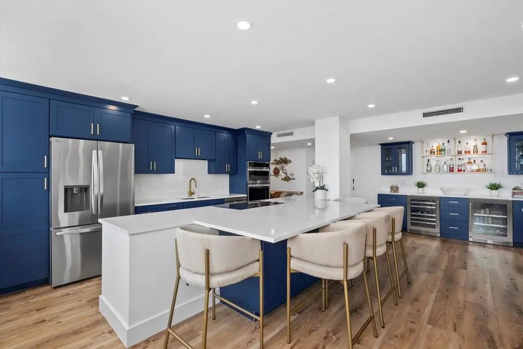 Perched high above the shoreline, Residence 8C at Siesta Towers delivers nearly 360-degree views spanning the Gulf, Big Pass, Sarasota Bay, and the twinkling downtown skyline. From glowing sunsets to sparkling city lights, this vantage point is among the most extraordinary on Siesta Key. Rarely available, this three-bedroom, three-bath residence has just undergone a complete, top-to-bottom remodel. Every detail was thoughtfully curated with todayâs luxury buyer in mindâoffering the ease of brand-new finishes within an iconic Siesta Key location. Designed with a sleek, modern aesthetic, the open floor plan showcases impact-rated windows and sliding glass doors, wide-plank luxury flooring, custom recessed lighting, and a seamless indoor-outdoor flow. The all-new designer kitchen is appointed with quartz countertops, custom soft-close cabinetry, premium stainless-steel smart appliances, and a striking island ideal for entertaining. Each of the three en-suite bathrooms has been fully redesigned with spa-level finishes, frameless glass showers, elegant tilework, and contemporary fixtures. The spacious primary suite is a retreat in itself, featuring a tranquil en-suite bath and panoramic water views. Siesta Towers is a secure, well-managed waterfront community offering an enviable lifestyle. Building amenities include secure access-controlled entry, 24/7 security, a remodeled club room, fitness room, heated waterfront pool, BBQ grills, fishing dock, social dock, bike storage, and more. Just beyond your door, Siesta Villageâs restaurants, shops, and nightlife are a short stroll away, with the powdery sands of world-renowned Siesta Beach minutes from home. This residence combines the rarity of a three-bedroom layout with a brand-new, complete remodel and nearly all-around viewsâan exceptional opportunity to own one of Siesta Keyâs most striking vantage points.
