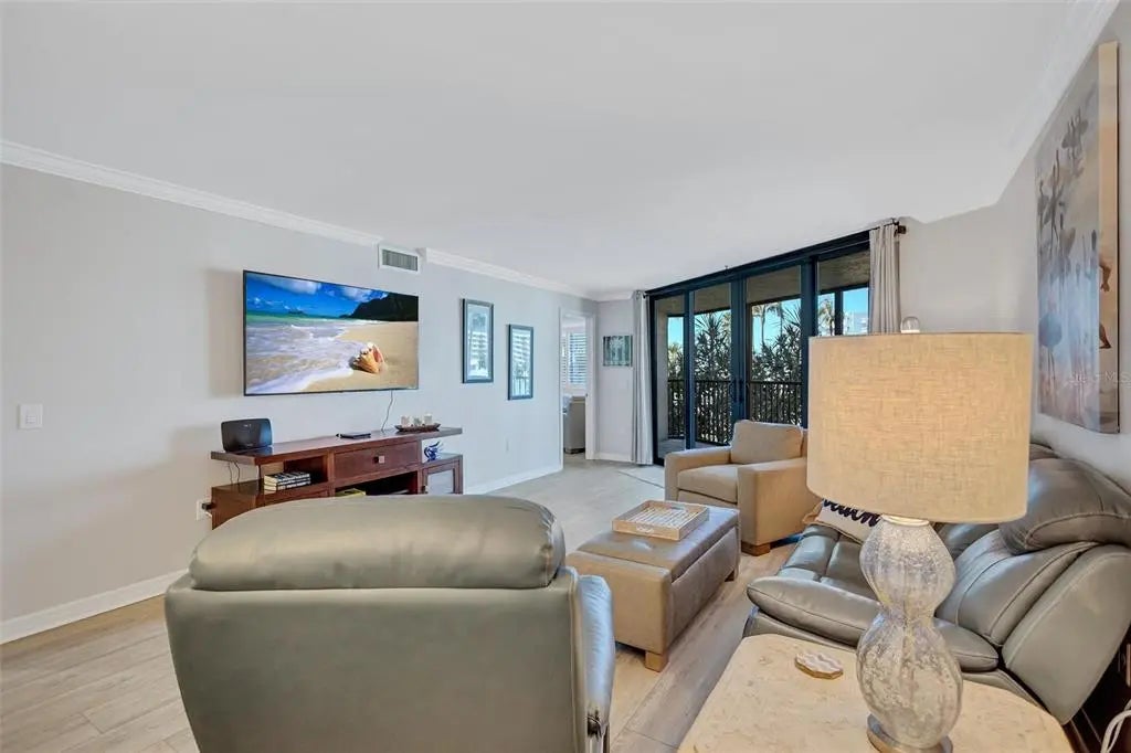 Welcome to Your Siesta Key Sanctuary. Step into paradise with this turnkey furnished condo in the highly sought-after Casarina complex, offering 200 feet of private beach access on the world-renowned Crescent Beach. Nestled on a lush 7-acre property, Casarina features beautifully landscaped gardens, tennis and pickleball courts, a beachside pool and spa, an elevated beach deck, and a welcoming clubhouse—all just steps from the famous crystal sands of Siesta Key Beach. Located on the third floor, this residence boasts a newly updated kitchen, luxury vinyl flooring, an updated guest bath, and a new AC unit. Enjoy serene garden views from your 17-foot screened balcony, with a peek-a-boo view of the Gulf and pool areas. Need extra space? The flexible 8’ x 8’ breakfast nook can easily be transformed into a home office or additional sleeping area. Casarina is a well-maintained 89-unit complex with fully funded reserves and recent complex renovations. Owners can bring one small pet, and enjoy the convenience of a covered carport and access to the free Siesta Key Trolley for dining, shopping, and entertainment. Whether you're paddle boarding, kayaking, biking, or simply relaxing on the beach, this condo offers the perfect blend of island lifestyle and resort-style amenities. See Video: https://sunnylensmedia.hd.pics/5880-Midnight-Pass-Rd/idx