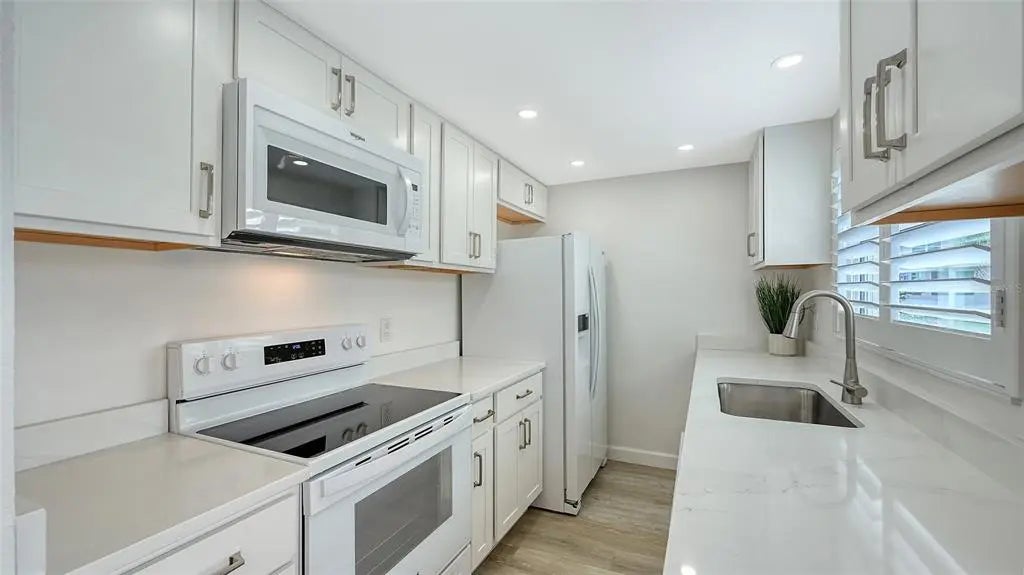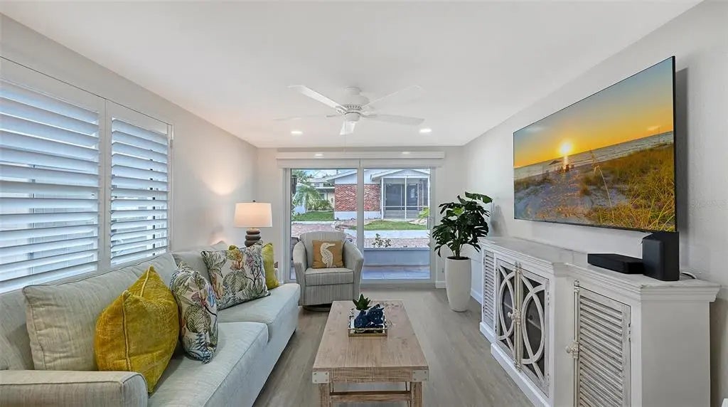 Welcome to Villa 63 at Aloha Kai, a beautifully renovated one-bedroom, one-bath villa located just steps from the world-famous quartz sands of Siesta Key Beach. This coastal retreat has been fully remodeled from top to bottom, offering the perfect combination of comfort, style, and income potential. From the moment you arrive, you’ll notice the fresh exterior with tropical landscaping, paver walkways, and colorful shutters that set the tone for this charming island escape. Inside, the villa opens to a bright and airy living space designed for both relaxation and entertaining. Luxury vinyl plank flooring runs throughout, complementing the crisp coastal color palette. Recessed lighting, plantation shutters, and high-end finishes make the interiors feel modern and inviting. The kitchen has been thoughtfully updated with white cabinetry, sleek counters, and newer appliances, blending functionality with coastal charm. The open-concept layout flows seamlessly into the dining area and spacious living room, where there’s plenty of room for family and friends. The villa comes tastefully furnished with comfortable seating, stylish décor, and thoughtful details that enhance the beachside experience. The bedroom is a tranquil retreat with a king-size bed, ample storage, and calming coastal accents. The bathroom has been fully remodeled with elegant tilework, a modern vanity, and updated fixtures, giving it a spa-like feel. Every inch of this villa has been refreshed to create a truly turnkey property—ideal as a second home, vacation rental, or year-round residence. Step outside to your private patio area, surrounded by lush landscaping and paver walkways, or stroll just a short distance to Aloha Kai’s private, gated access to Siesta Key’s award-winning beach. This community is known for its resort-style amenities, including the island’s largest heated pool, a well-appointed clubhouse, shuffleboard courts, and an on-site rental management program that makes ownership effortless. Villa 63 is not only an inviting personal retreat but also an exceptional rental opportunity. Aloha Kai’s rental program is highly regarded, offering owners the ability to generate strong rental income while still enjoying the property themselves. With its prime location in the heart of Siesta Key, this villa gives you the best of both worlds: a peaceful getaway and a smart investment. Whether you’re drawn by the sugar-white sands, turquoise waters, or vibrant island lifestyle, the villa delivers it all in a fresh, modern package. Don’t miss the opportunity to own a fully remodeled villa in one of Siesta Key’s most established beachfront communities.