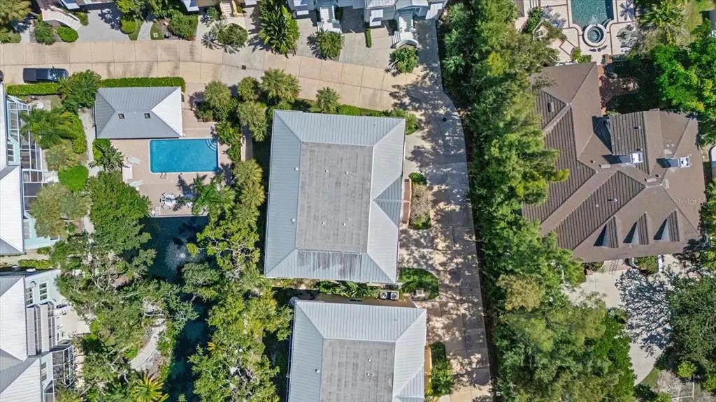 Enter a coastal residence where architectural vision, designer finishes and direct access to the water create an exceptional lifestyle on Siesta Key. In the gated waterfront community of Hamilton Club, this fully reimagined home includes a private deeded dock on deep water, offering instant access to the Intracoastal, Sarasota Bay and the Gulf. Inside, the renovation reflects thoughtful design and custom craftsmanship throughout. The great room makes a dramatic impression with 20-foot ceilings, a floor-to-ceiling quartz feature wall with fireplace, floating wet bar, and glass sliders opening to a screened balcony overlooking the pool and pond. The kitchen was completely redesigned with imported cabinetry, premium appliances by Miele, Bosch, GE and KitchenAid, granite counters, and lighting that elevates function and style. An oversized two-car garage with additional golf cart space and additional storage adds a level of convenience rarely found in a coastal property. The residence offers three en-suite bedrooms and a loft, including two separate primary suites. The main floor suite features its balcony and spa-style bath. Upstairs, the primary suite includes a custom fireplace accent wall, walk in closet, and a travertine wrapped bath with freestanding tub, glass enclosed shower and extensive cabinetry. A third guest suite and spacious loft with custom iron railing complete the upper level. On the ground floor, a large climate-controlled bonus room with a half-bath opens to the lanai and offers flexible space for recreation, hobbies or fitness. Impact-rated windows, custom railings, hardwood floors, Nest thermostats, and central vac contribute to a lock and leave lifestyle with comfort of a single-family home. Hamilton Club is a private enclave of just 18 residences with a heated pool and tennis court, minutes from Siesta Village, Shell Road beach access and sugar sand shoreline of Siesta Beach. This is a rare opportunity to enjoy boating, privacy and elegant coastal living in an intimate, gated setting.