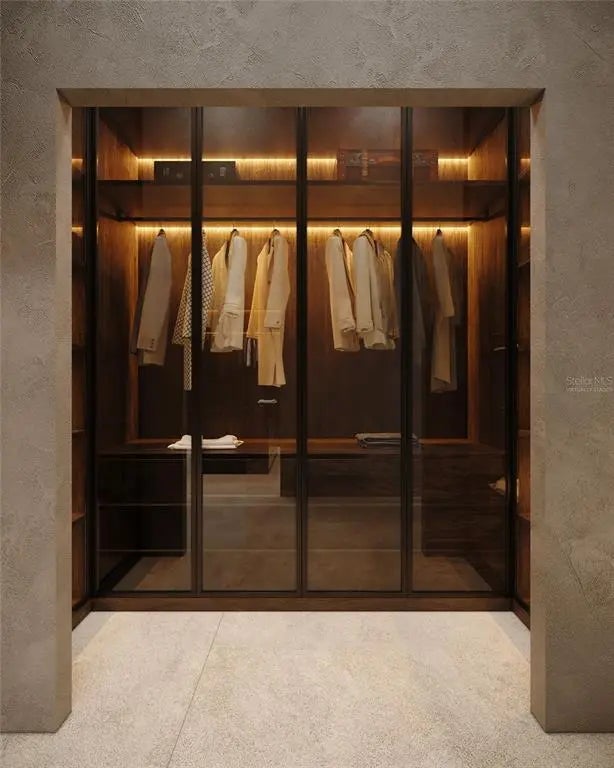 - Exterior FeaturesAwning(s), Balcony, Courtyard, Garden, Irrigation System, Lighting, Outdoor Grill, Outdoor Kitchen, Outdoor Shower, Private Mailbox, Rain Gutters, Sauna, Shade Shutter(s), Sidewalk, Sliding Doors, Storage, Tennis Court(s)