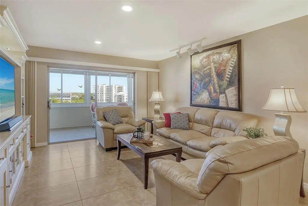 LOCATION, LOCATION, LOCATION! Discover your slice of paradise in the desirable Peppertree Bay community on Siesta Key. This fabulous, turnkey furnished 7th-floor Gulfside condo, offers direct beach access and panoramic views of Siesta Key and Downtown Sarasota. Featuring tile flooring throughout, this 2-bed, 2-bath layout includes a custom kitchen with quartz countertops, mosaic tile backsplash, center island with breakfast bar, ample cabinetry, and stainless steel appliances. The open-concept dining and living areas flow seamlessly onto the Florida room patio, perfect for entertaining or unwinding. Both bedroom suites are positioned on opposite sides of the unit for privacy and each offers patio access. Additional highlights include a custom utility room with in-unit washer & dryer, generous storage, and under-building parking. Peppertree Bay is a gulf-to-bay community offering resort-style amenities: fishing pier, BBQ grills and picnic areas, tennis and pickleball courts, fitness center, and two clubhouses with full kitchens and vibrant social events. Enjoy easy access to Siesta Key Village for live music, boutique shopping, and dining, plus convenient off-island access to all that Sarasota has to offer. Whether you're looking for a full-time residence, vacation retreat, or investment opportunity, this condo will not disappoint. Bonus: current owners are open to seasonal lease-back, offering instant income potential if available.