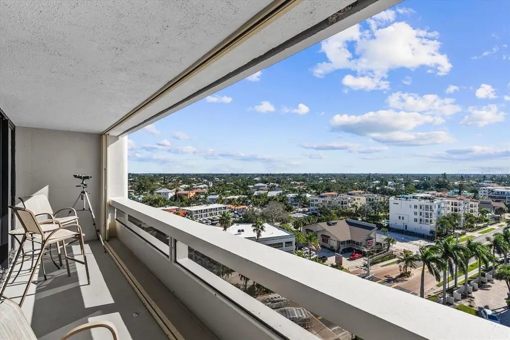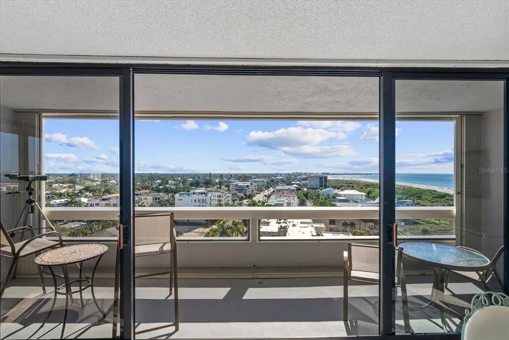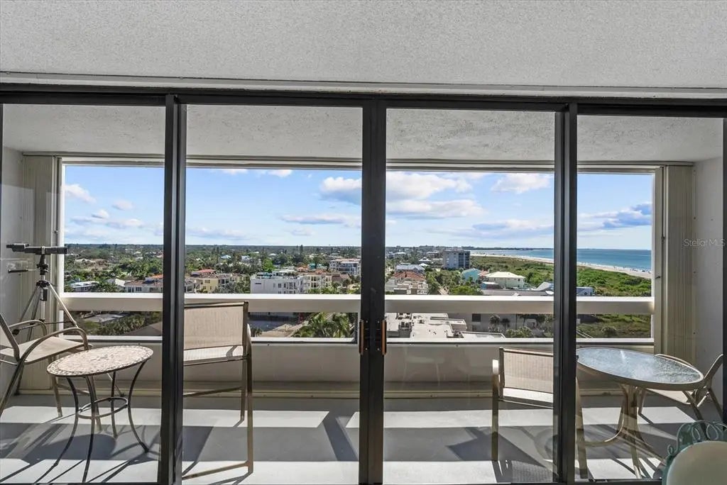 Discover coastal luxury at Beach Terrace, one of Siesta Key's most coveted addresses. Perfectly positioned at the end of the village with direct Gulf of Mexico frontage, this exceptional 1 bedroom, 1 bathroom corner residence offers an unparalleled beachfront lifestyle with breathtaking panoramic views that truly set it apart. This thoughtfully designed condominium showcases sweeping vistas that capture the essence of Florida's Gulf Coast living. From the pristine white sands of Siesta Key Beach to the sparkling aqua waters of the Gulf, and extending to the glittering skyline of downtown Sarasota and even Longboat Key in the distance, the views are simply extraordinary. At night, watch as the twinkling lights of Siesta Key Village and downtown Sarasota create a magical backdrop that makes this easily one of the best views on Siesta Key. One of the standout features of this residence is the three spacious private balconies that provide the perfect vantage points to embrace the coastal lifestyle. Start your morning with coffee while watching the sunrise, unwind with spectacular sunset views in the evening, or simply soak in the panoramic scenery throughout the day. These outdoor spaces are truly an extension of your living area and offer unmatched opportunities to experience the beauty of Siesta Key from every angle. Enter through an inviting tiled foyer that flows seamlessly into the well-appointed kitchen. The generous living area features dual sliding glass doors that flood the space with natural light and frame the expansive views of Siesta Key and the beach beyond. Imagine relaxing on your couch while gazing at the sparkling waters of the Gulf, this is everyday living at Beach Terrace. The dining area offers ample room for entertaining family and friends with gorgeous views. Beach Terrace provides resort-style amenities that complete the coastal living experience. Residents enjoy an elevated heated saltwater pool, a modern fitness center, and a welcoming community room, all just steps from your private beach access. Everything you need for the ultimate Florida lifestyle is right at your doorstep. This is more than just a home; it's a lifestyle. Beach Terrace combines the tranquility of a secluded Gulf-front location with the convenience of being nestled at the end of the charming Siesta Key Village. Location, location, location! Don't miss this rare opportunity to own a piece of paradise in one of Florida's most desirable beach communities, where stunning views and coastal elegance come together in perfect harmony.