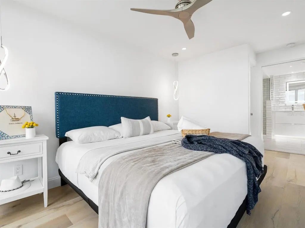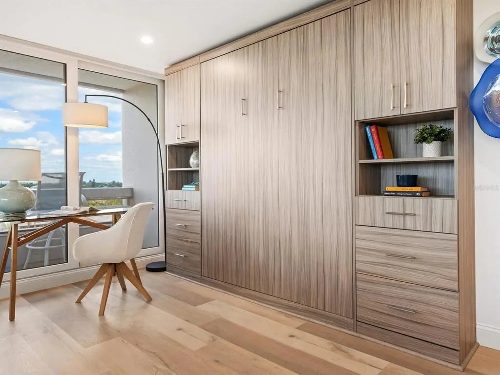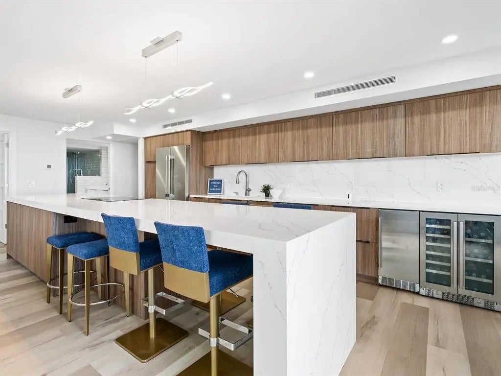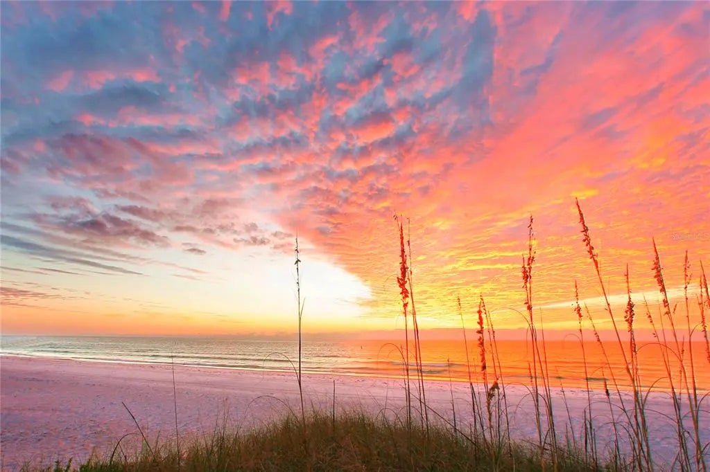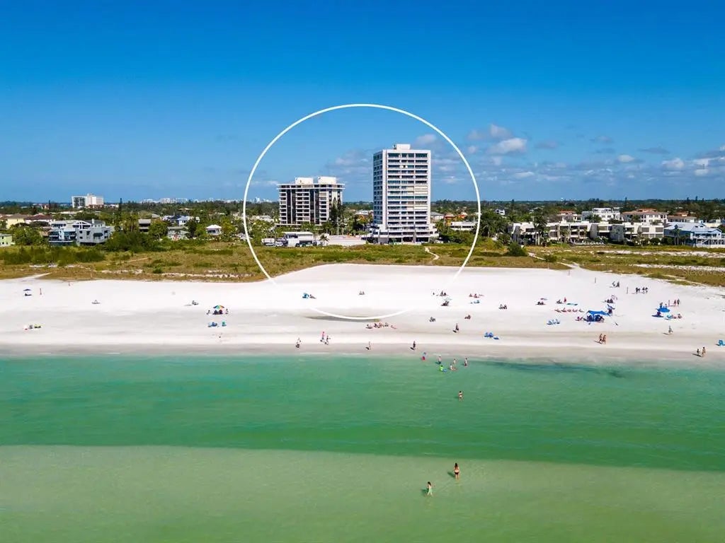 Experience the ultimate in Siesta Key beachfront living. Directly on world-renowned Siesta Beach, rated #1 in the U.S. and #4 worldwide by TripAdvisor, this stunning fifth-floor corner residence captures the essence of luxury coastal living. Recently renovated to perfection, this one-bedroom, 1.5-bath condominium offers a rare combination of modern sophistication, coastal elegance and sweeping Gulf views. Designed by the acclaimed architect Frank Folsom Smith, the iconic Beach Terrace building is an architectural gem. This residence is a standout, meticulously renovated by a designer whose impeccable taste and attention to detail elevate the home well beyond expectation, with a focus on efficient use of space. The result is a move-in-ready retreat where every inch reflects exceptional craftsmanship and thoughtful design. Go inside to discover two walls of wrap-around, floor-to-ceiling impact-rated sliding glass doors that open to three private balconies, expanding the total usable space to 1,284 square feet, immersing you in stunning views of the Gulf’s turquoise waters and legendary white quartz sand. The chef’s kitchen is a masterpiece, featuring Quartzite countertops, custom European cabinetry, high-end stainless steel appliances and an expansive island that anchors the open concept living area. The spacious great room, bathed in natural light, includes a custom Murphy bed for overnight guests and provides a setting to enjoy Siesta Key’s radiant sunsets. Every element of this home is designed for comfort and style, from the serene primary suite to the elegant finishes throughout. The primary bath reflects a flawless balance of form and function. Featuring European cabinetry, a glass-enclosed walk-in shower and spectacular floor-to-ceiling tilework, this serene space exudes modern elegance. Every detail, from the sleek fixtures to the artful tile patterns, has been thoughtfully curated to create a spa-like sanctuary that complements the residence’s sophisticated coastal aesthetic. Additional improvements include a new air conditioning system with updated ductwork, new electrical upgrades and a new water heater, ensuring comfort and peace of mind for years to come. Within Beach Terrace’s exclusive enclave, residents enjoy the security of a controlled-access lobby, the convenience of an on-site manager, and premium amenities including a heated saltwater pool overlooking the Gulf, fitness center and community lounge. Go outside and you’re just moments from Siesta Key Village, where you’ll find inviting boutiques, beachside cafés and vibrant local dining. With the beach at your doorstep, a car becomes optional. And when you crave a touch of city life, downtown Sarasota’s acclaimed cultural scene, restaurants, galleries, opera, ballet, and theaters, is just minutes away across the north bridge. This is more than a residence, it’s a rare opportunity to own a beautifully reimagined piece of paradise, where luxury, location and lifestyle converge to create an extraordinary beachfront experience on Siesta Key.