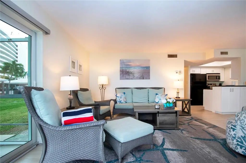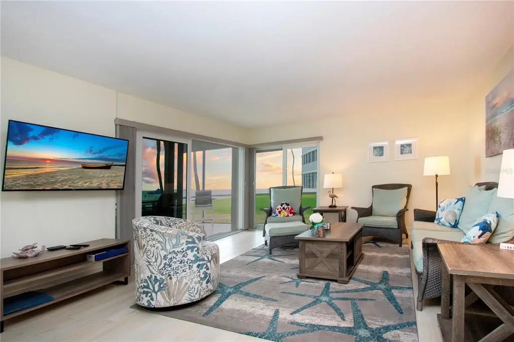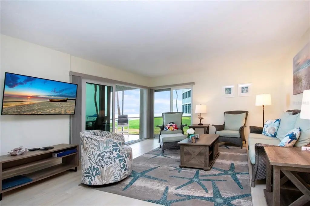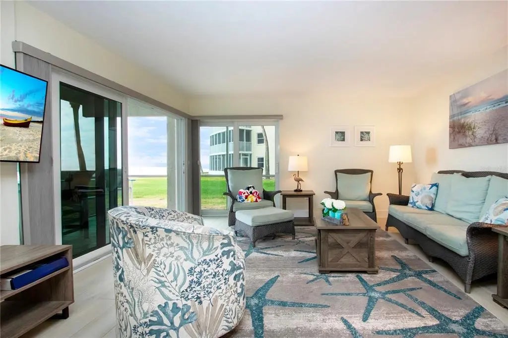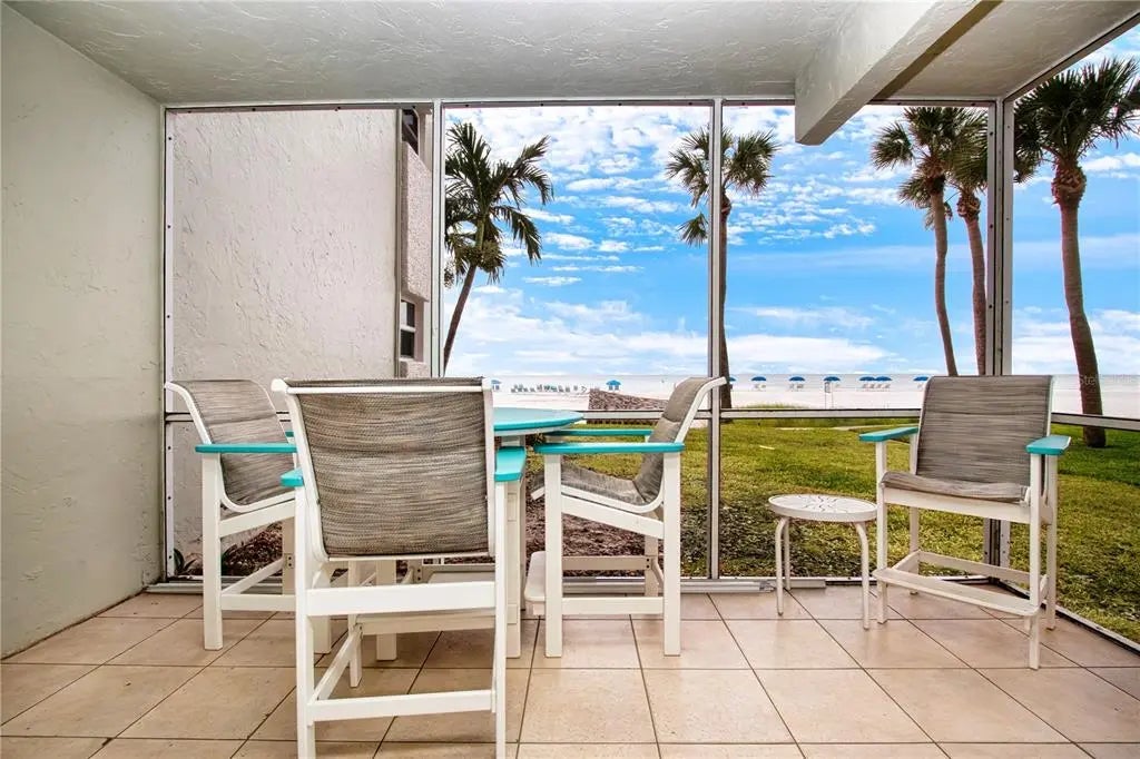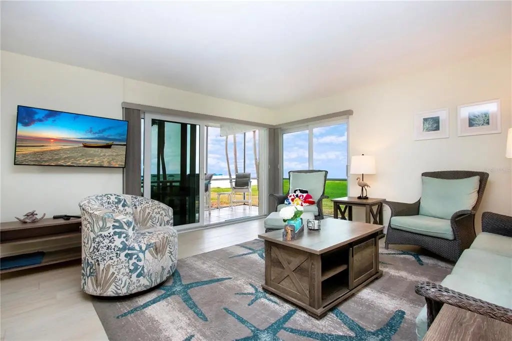 Beachfront Paradise at Crescent Arms, Siesta Key. Wake up to the sound of gentle waves and step directly onto the powdery white sands of world-renowned Siesta Key Beach from this beautifully appointed ground-floor beachfront residence at Crescent Arms. Perfectly positioned for effortless coastal living, this 2-bedroom, 2-bath unit offers unparalleled Gulf views and the rare convenience of walk-out beach access—no elevators, no stairs, just pure island ease. Inside, the open-concept layout is bathed in natural light, featuring a spacious living area that flows seamlessly to the screened lanai, where you can enjoy sunsets over the Gulf of Mexico. The updated kitchen includes modern appliances, solid-surface countertops, and ample storage, making it ideal for both full-time living and vacation stays. The primary suite boasts ample room for 2 full beds or a king bed which will boost rental income and a private ensuite bath, while the guest bedroom provides comfort and privacy for family or visitors. Crescent Arms offers resort-style amenities, including a heated beachside pool, private beach lounges, grilling area, and gated access for security and peace of mind. Located on Siesta Key, this community is within minutes of Siesta Key Village, shops, restaurants, and island nightlife. Whether you’re seeking a serene retreat, an investment property with excellent rental potential, or your forever beach home, this ground-floor beachfront gem delivers the ultimate Siesta Key lifestyle. Recent upgrades include 2025 Hurricane Impact sliding doors, new plank tile though-out, new appliances, newer kitchen cabinets and granite tops. Strong rental history attached. Don't wait on this one!
