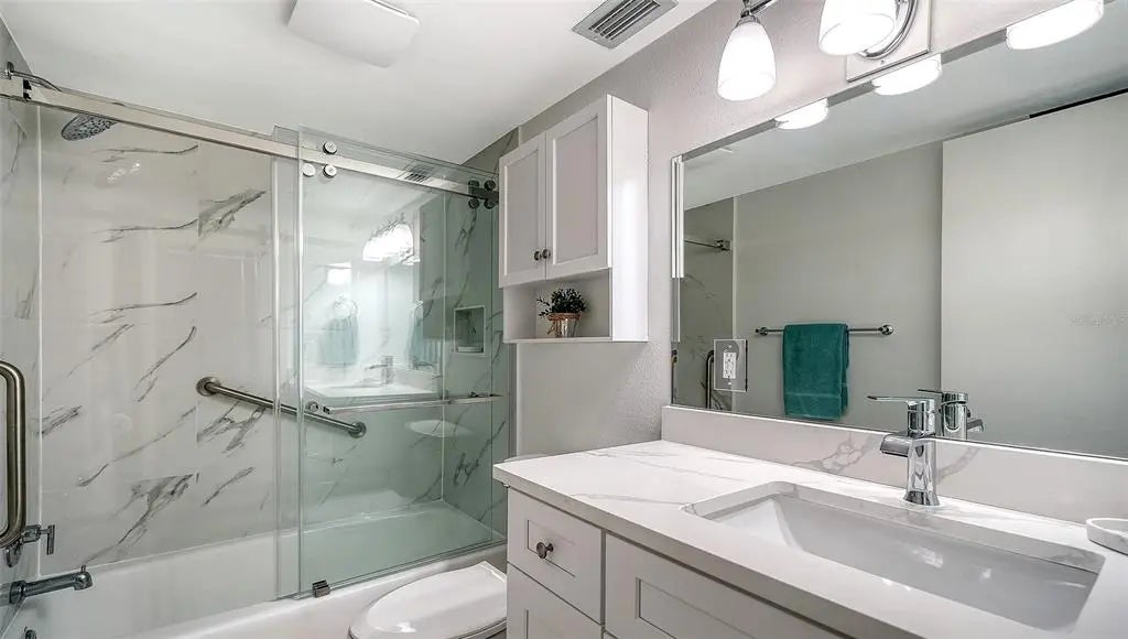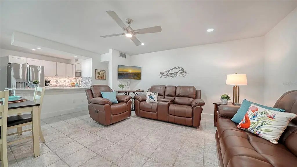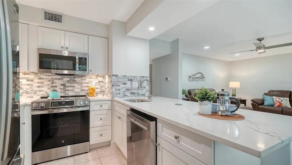 Gulf-side living at its best! This cute-as-a-button 2-bedroom, 2-bath ground-floor unit has been completely remodeled from top to bottom, featuring new electrical and plumbing, impact windows and doors, stylish new flooring, beautifully updated baths, and a stunning new kitchen with quartz countertops, tile backsplash, countertop breakfast bar, and stainless-steel appliances. The primary bedroom includes an ensuite half bath, while the guest bedroom is conveniently located near the fully remodeled hall bath. Step right out your door and enjoy private beachfront access, a sparkling community pool, and outdoor seating areas with picnic tables. Assigned parking and guest spaces add convenience, while short-term rentals are allowed, offering excellent income potential and bookings already in place should you wish to keep them! Ideally located close to the Village for shops, restaurants, and entertainment, with the free trolley nearby to explore both sides of the Key. This is the perfect coastal retreat and will not disappoint!