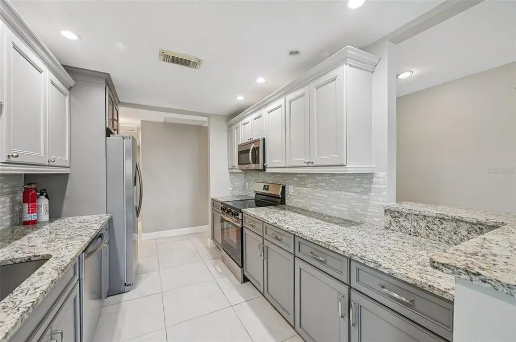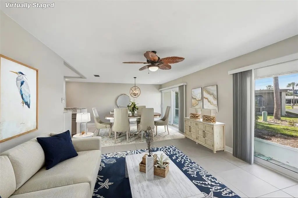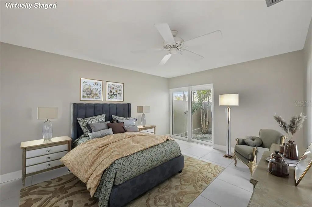 One or more photo(s) has been virtually staged. Tucked in the vibrant heart of Siesta Key Village, this beautifully updated villa offers the perfect blend of coastal living and modern convenience. Rarely available, this 3-bedroom, 2-bath home is part of the highly desirable Whispering Sands community, an active 55+ enclave with its own private beach just a short five-minute stroll from your front door. This beach is truly one of a kind, featuring rare ancient quartz sand that is 99% pure and originally formed in the Appalachian Mountains. Inside, the home has been tastefully remodeled with tile flooring throughout, a refreshed kitchen featuring all-new lower cabinets with stone countertops, complemented by newly painted upper cabinets in the same high-quality construction and style for a seamless look. Stainless steel appliances complete the modern kitchen design. Both bathrooms have been completely renovated for a clean, contemporary feel. The spacious primary suite includes a large walk-in closet with a makeup vanity and its own private patio. A second patio off the main living area creates an inviting space for outdoor lounging or dining. Designed for comfort and independence, this villa shares no common walls and is fully air conditioned, including the garage, which also features its own dedicated AC unit. Recent improvements provide peace of mind, with hurricane-rated impact windows and sliders installed in 2022, a new roof, updated plumbing, and durable plastered concrete masonry walls. Whispering Sands offers an exceptional lifestyle with two sparkling pools, one just steps away and another at the private beachfront, plus community security and an active social calendar. After watching a stunning Siesta Key sunset, you’ll be just a short distance from world-class restaurants and entertainment in the Village. Whether you’re in the mood for seafood, steak, or sushi, it’s all within reach. Whispering Sands is more than a place to live, it’s the ideal coastal retreat where every day feels like a vacation.