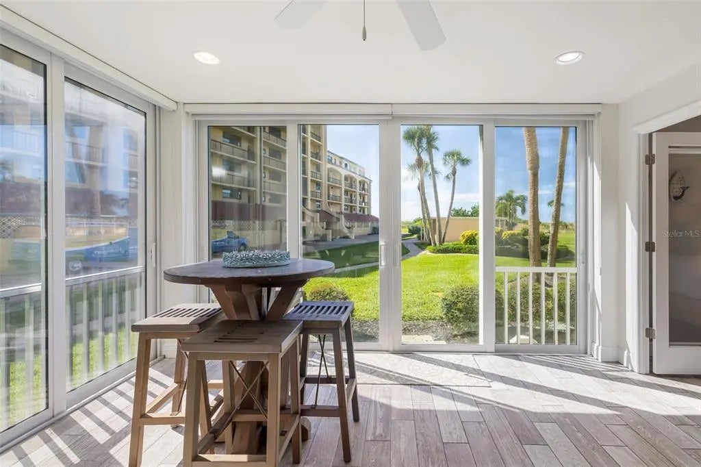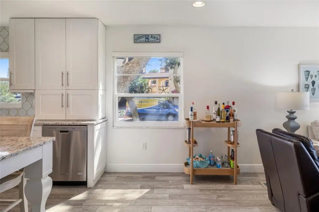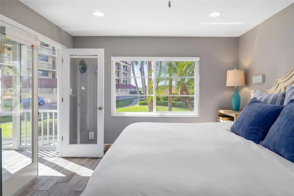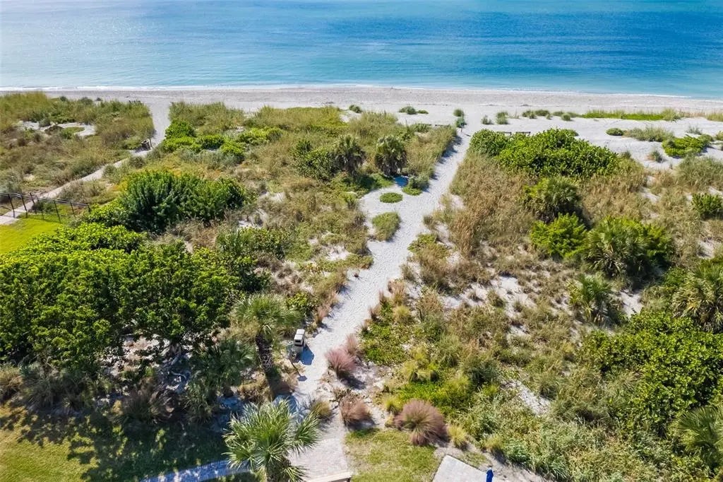 NO FLOODING from hurricanes! Not a drop! This ground floor beach front condo did not get any damage from last year’s storms! Bay Tree Club is an extremely popular community on the south end of Siesta Key and there was no damage to any of the 120 condos in this well managed and maintained community and remains in HIGH DEMAND. This immaculate and easy accessible end unit directly on the gulf is STUNNING with upgrades galore. Sellers have spared no expense expanding their living space and have Installed hurricane impact glass throughout this customized condo. Upon entering, you’ll notice the beautiful solid wood white cabinetry in this spacious kitchen with superior stainless steel appliances including a farmhouse sink. The timeless and classic high polished granite that covers this kitchen is beautiful and was also creatively used to customize a 10 foot built in dining room table. And for added convenience and function, designated work space sits at the front of kitchen next to another point of entry with sliding glass doors, where your designated parking space is located. Primary light filled en-suite bedroom features a French door entry, gorgeous bathroom, and large closet. Behind a big white sliding barn door, you’ll find the guest bath and the secondary bedroom, which has a large and extremely comfortable but still cozy built in bench/sleeping area that features tons of storage beneath giving incredible space and function to this room. Luxury wood plank tile throughout entire condo offers a timeless appeal. Unique to this community are private storage cabanas right off the beach where each owner has their own designated space to keep their e-bikes, beach chairs and other essentials. For added convenience to owners and guests, restrooms are also located directly off your pristine private access to the best location on Turtle Beach. Bring your boat too, as this is a gulf and bay community with superior Trek decking docks. There are BBQ areas and heated pools on both sides of this beach and bay community. The Siesta Key beach trolley stops immediately in front of Bay Tree Club for hop on/hop off free transport to the island’s beaches and to both enormously popular North and South Villages and runs all day up and into the night. This pet friendly community is ideal for a second home or an investment property, permitting one month minimum rentals January through April, and 2 weeks the remaining 8 months of the year. Make no mistake- this corner unit on the gulf side can boast a high-end renovation with premium finishes and is in an exceptional location. The unit has a rental in place for February 2026, that must be honored.