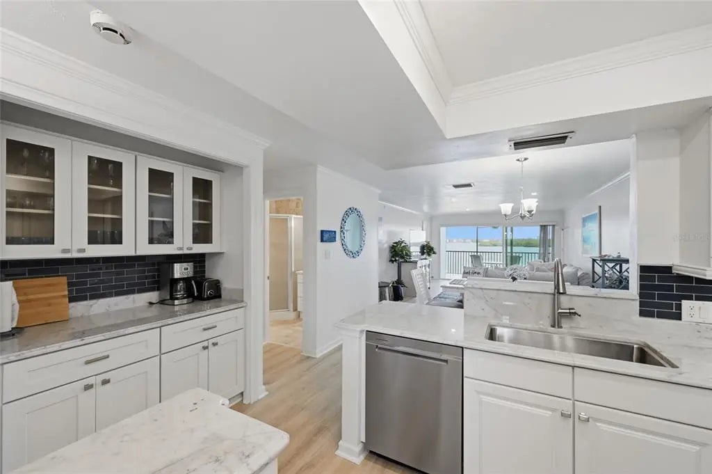 Experience coastal living at Sunrise Cove, one of Siesta Key’s most amenity-rich and sought-after waterfront communities. This beautifully updated 2-bedroom, 2-bath residence offers an ideal location directly on Sarasota Bay and just across from the turquoise waters and sandy shoreline of Turtle Beach. Updated within the last four years and offered turn-key furnished, this home features impact-rated windows, new flooring, upgraded lighting, HVAC, and kitchen improvements, all designed with a bright coastal aesthetic. The open concept layout flows from the kitchen to the dining and living areas and out to a private terrace where breathtaking sunrises over the bay greet you each morning. With the recent opening of Midnight Pass, the bay now boasts exceptional water clarity in vibrant blues and greens. Boaters will appreciate the rare ability to dock on property at the expansive new dock and slips currently under construction, with an additional full-service marina conveniently located at the adjacent property. Sunrise Cove offers true resort-style amenities including two heated waterfront pools, a recently updated clubhouse with kitchen, ping-pong and billiards, a fitness center, BBQ and picnic area, two lighted tennis/pickleball courts, kayak storage and launch, covered parking, and a washer and dryer on every floor. A popular bayfront restaurant is just steps away, with more dining, shopping, and nightlife a short distance up the road in Crescent Village. This residence delivers the perfect combination of beach access, boating, and amenity-rich island living—move in this season and enjoy the best of Siesta Key.