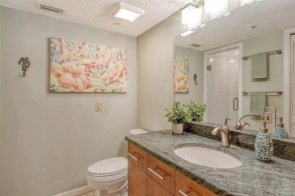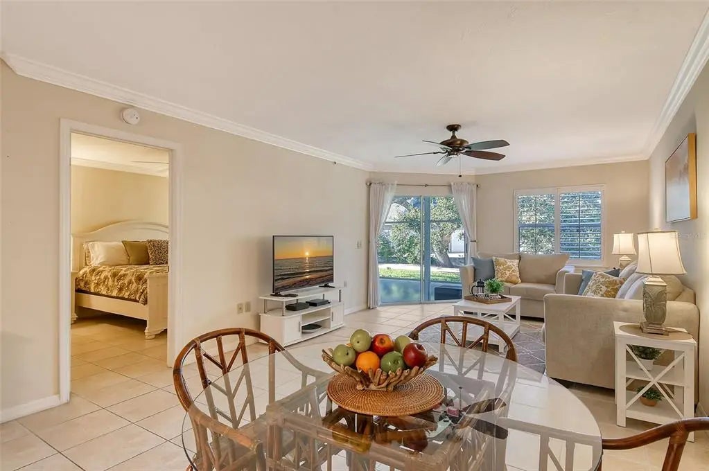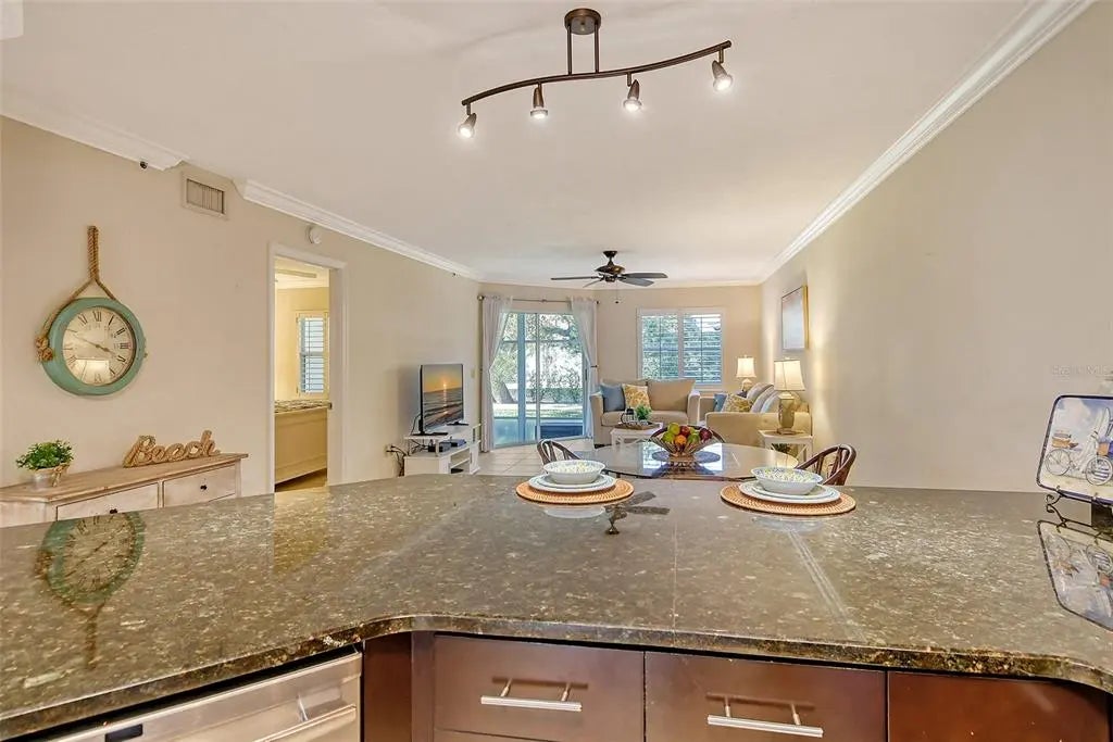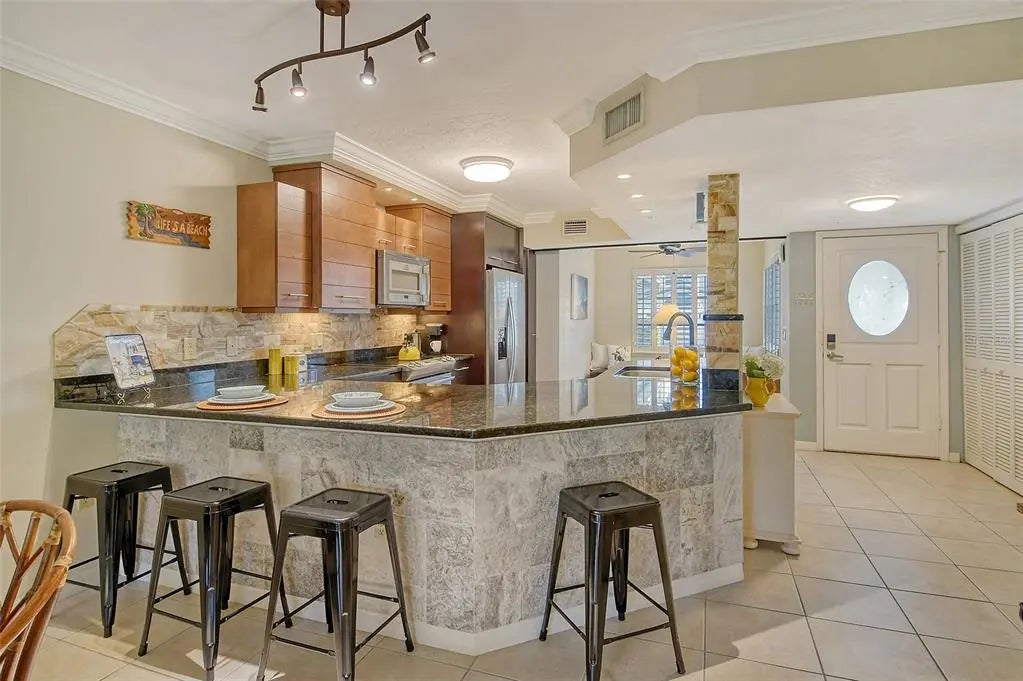 LOCATION, LOCATION, LOCATION! Nestled in the desirable and picturesque beach community of Gulf & Bay Club Bayside. This delightful 1 bed plus den, 2 bath condo with a single garage is being sold turnkey furnished all you need is your toothbrush! This delightful ground floor unit provides peace and tranquility to escape our busy day to day lives. Relax on the patio and enjoy the water view and the Florida wildlife or take a stroll to the community pool and join in the social lifestyle this community is renowned for. This unit has a great layout offering a spacious well-equipped kitchen which has been totally opened up with granite counters, title backsplash, ample storage and work surface, stainless steel appliances and a dining counter. The open plan living area opens onto the patio extending the living space for al fresco dining. The spacious master bedroom has a walk-in closet and an updated ensuite bathroom offering plenty of storage. With an additional guest bath and a den with a sliding partition for privacy, making a perfect space for an office, dinette or a guest bed for visiting friends and family. The community offers two heated pool, tennis and pickleball courts, a clubhouse with a full kitchen, a fitness room, BBQ, picnic areas, a fishing pier and deeded beach access! The beach access is on your doorstep and of course you have the wonderful Siesta Key Village for entertainment and restaurants. Saunter to the village or take the free Siesta Key Trolley which connects the two sides of the Key. Whether you’re seeking a vacation home or an investment property, the weekly rental policy makes this an exceptional opportunity. And best of all, this unit sustained no hurricane damage.