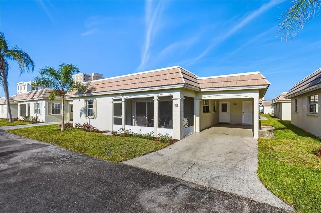 Your dream Beachside villa is here. Smartly appointed with updated bathrooms and kitchen. Turn key furnished! Carport. Weekly rental can provide income for the owner. On-site manager. Island house is a superbly maintained complex featuring two beach cabanas, a beach, rinsing station, beach, chairs, a large heated, swimming pool, shuffleboard with a view, a game room, two gas grills available to all and a beachfront courtyard where you will experience the most amazing sunsets. Ride the free trolley to Siesta Key village for Dining shopping and entertainment.
