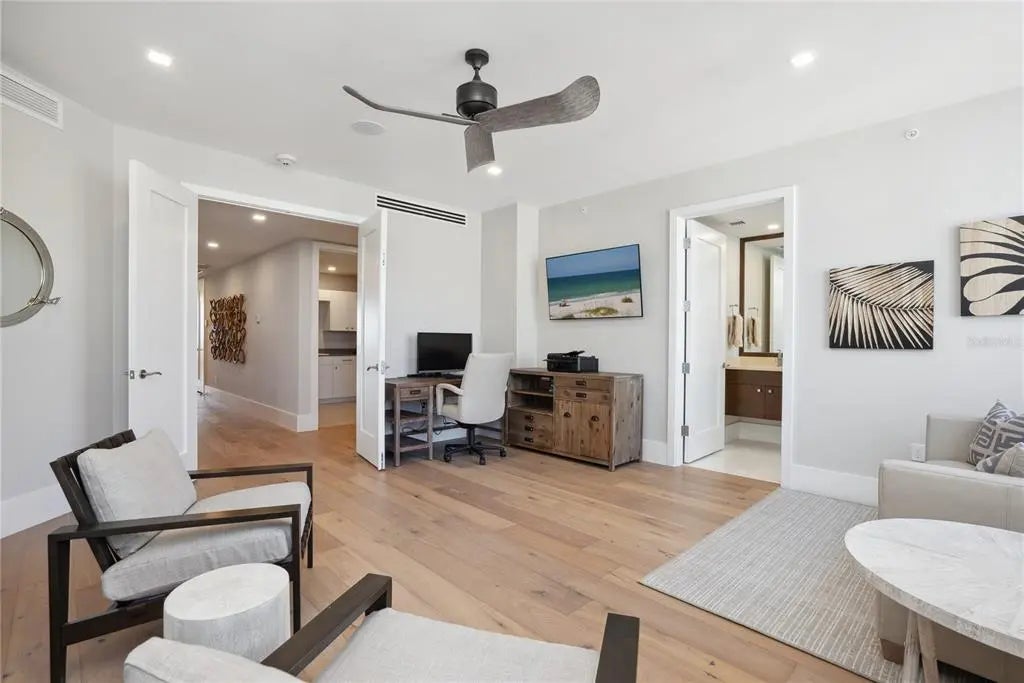 Welcome to Residence #201 at Halcyon Siesta Key—a rare opportunity within one of the island’s most exclusive boutique communities. With only six Gulf-front residences, Halcyon offers the ultimate in privacy, luxury, and architectural sophistication. This exquisite coastal retreat blends modern design with relaxed seaside living. Engineered hardwood floors, soft coastal hues, and floor-to-ceiling hurricane-impact windows frame sweeping views of the turquoise Gulf waters. Step off your private elevator into a bright, open floor plan designed for effortless entertaining. The gourmet kitchen features Wolf appliances, a wine fridge, and an oversized island flowing seamlessly into the dining and living spaces. The Gulf-front primary suite is a serene escape with a spa-inspired bath boasting dual vanities, a soaking tub, and a glass-enclosed shower. Two additional guest suites—each with private en-suite baths—offer exceptional comfort, while a versatile den/office provides flexibility for work or an additional bedroom. Unwind on your private Gulf-front terrace, where sunsets and sea breezes set the tone for everyday tranquility. Enjoy direct private beach access and the exclusive front amenity cabin, complete with a fitness center, bathrooms, comfortable lounge area, and an expansive deck ideal for entertaining or relaxing after a day by the water. A private two-car garage and resort-style amenities—including a beachfront pool and fire pit—complete this one-of-a-kind coastal lifestyle!