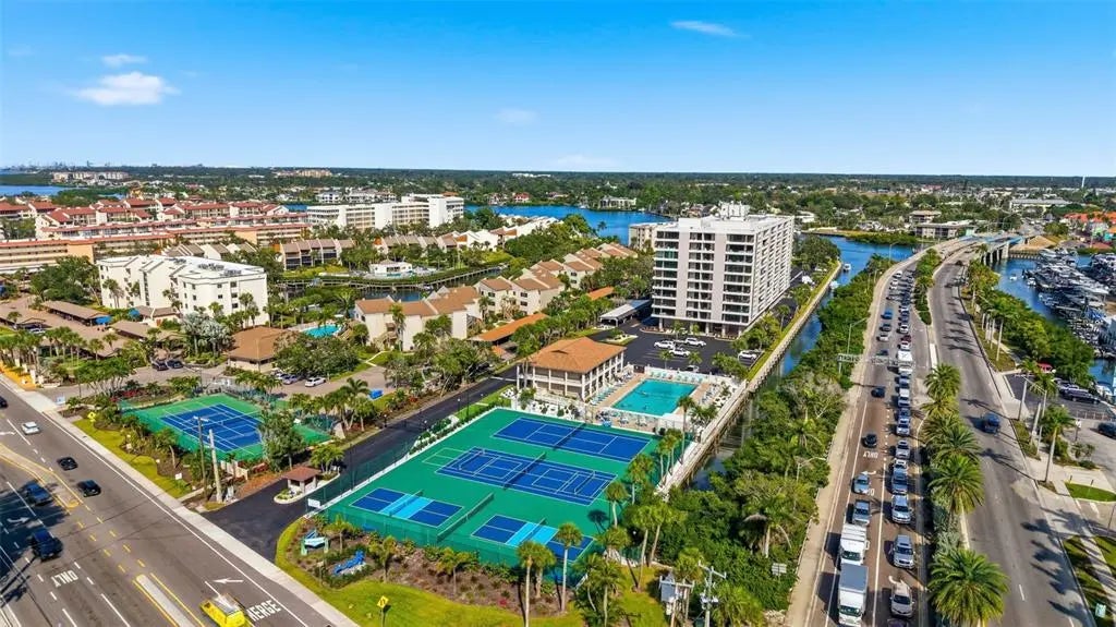 Welcome to The Anchorage Yacht and Tennis Club on Siesta Key, a gated waterfront community that combines resort-style amenities, private deeded beach access just across the street, and rare value for boaters, all in one of the island’s most desirable locations. This turnkey furnished 2-bedroom, 2-bath condo features a split floor plan, ensuite bedrooms, new flooring, and abundant natural light, offering a move-in-ready retreat with strong weekly rental potential. What truly sets The Anchorage apart is its canal-front dockage with first-come, first-serve boat slips, providing direct access to Little Sarasota Bay and the Intracoastal Waterway. For boating enthusiasts, this is an exceptional value—offering a rare opportunity to enjoy waterfront living and boating convenience without the premium price or waitlists typically found on Siesta Key. The Anchorage also features an unmatched amenity package: the largest Olympic-size heated pool on Siesta Key, lighted tennis and pickleball courts, a fitness center, sauna, kayak storage and launch, shuffleboard, BBQ and picnic areas, and lush, tropical landscaping throughout the beautifully maintained grounds. The unit includes one covered assigned parking space, with ample guest parking available. Located mid-Key, just minutes from Siesta Key Village, this property offers the ideal balance of access and escape. Whether you're looking for a beach retreat, a boating lifestyle, an income-producing rental, or all three, this property delivers exceptional value, flexibility, and location in one of Florida’s top coastal destinations.