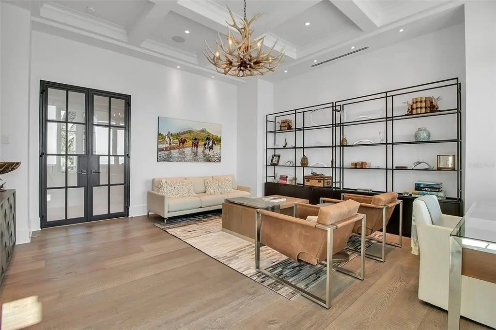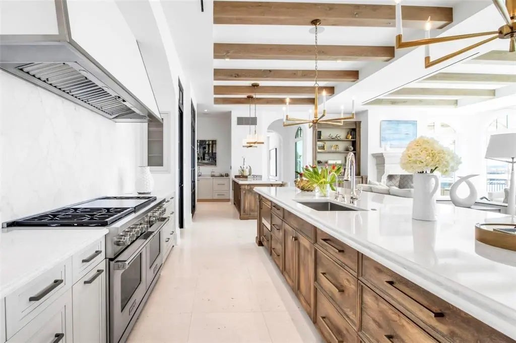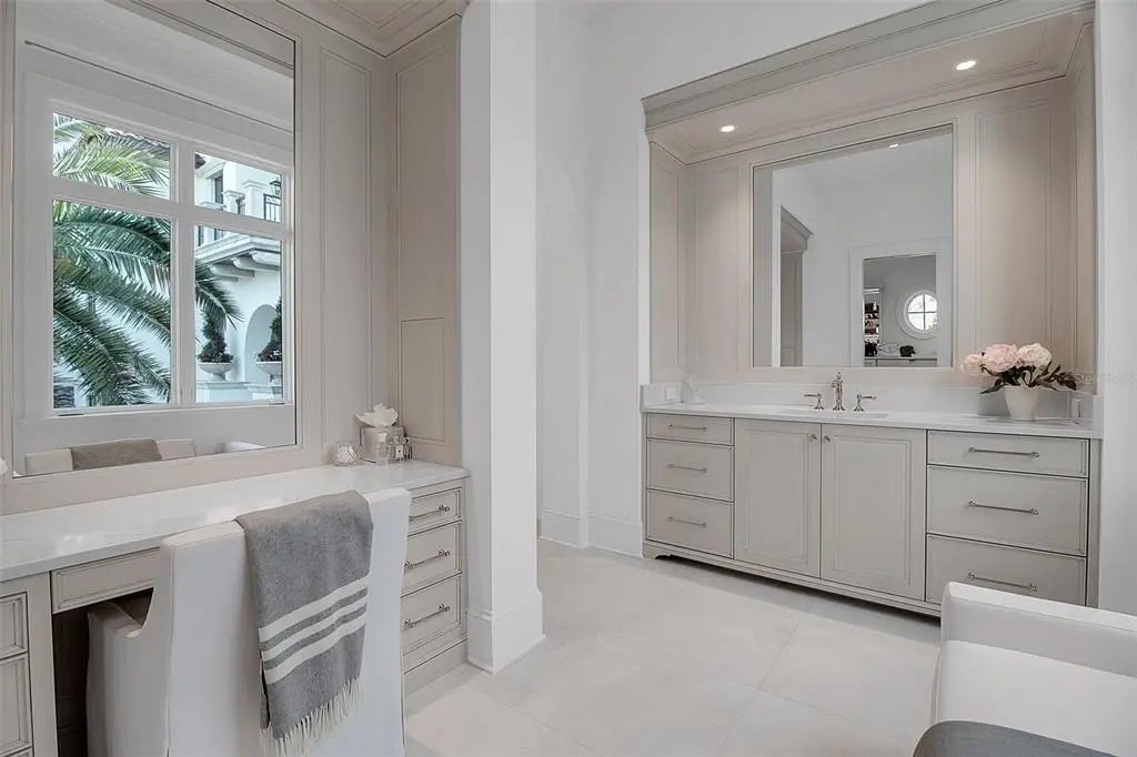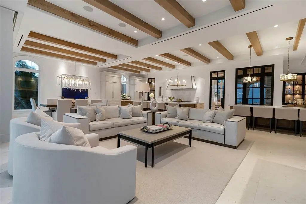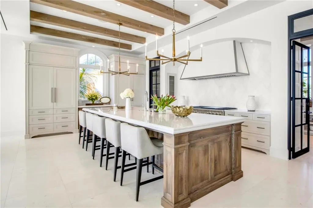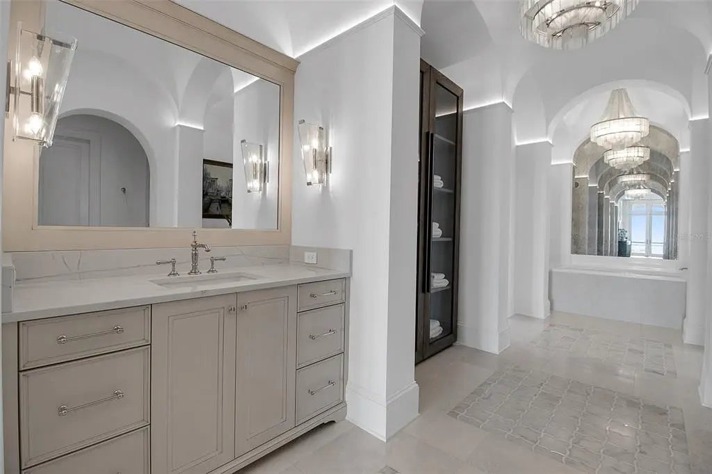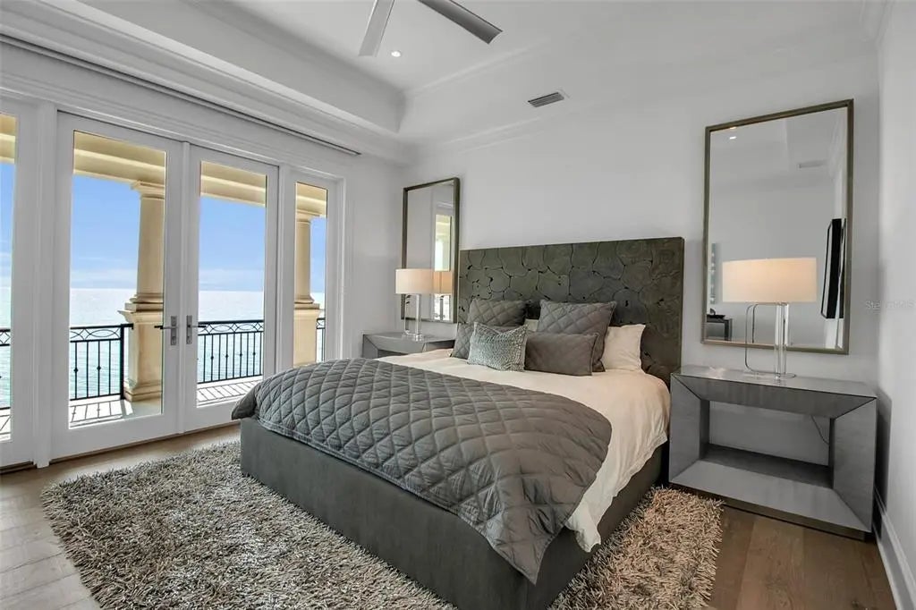 Rising above an enviable stretch of shoreline, this Gulf-front estate showcases timeless architecture and coastal refinement. Designed by CMSA Architects and completed in 2020, the residence features layered rooflines, sculpted stone staircases, and soaring arched windows across more than 180 feet of Gulf frontage. With 10,600 square feet of interiors and 20,982 square feet in total, the home offers a grand yet effortless indoor–outdoor lifestyle, ideal for both elevated entertaining and daily living. A sweeping motor court, mature palms, and a grand double staircase create an immediate sense of arrival. Inside, natural light and uninterrupted Gulf vistas establish a feeling of calm, scale, and sophistication from sunrise to sunset. The great room, lined with floor-to-ceiling arched windows and anchored by a carved-stone fireplace, delivers both serenity and architectural presence. The main kitchen is a triumph of craftsmanship - featuring custom Campbell cabinetry, quartz countertops, designer lighting, Sub-Zero refrigeration, a Wolf six-burner dual-oven range, and a substantial island that anchors the open flow into the living and dining spaces. A prep kitchen and workspace elevate functionality with premium appliances, expansive storage, quartz counters, and a dedicated gift-wrapping wall. The bar and wine room create a refined entertaining destination, defined by custom cabinetry and designer lighting. An iron-and-glass–enclosed, temperature-controlled wine room serves as the focal point, complemented by adjacent illuminated display shelving. Sub-Zero refrigeration, an ice maker, and a Fisher & Paykel dishwasher drawer complete the space. Outdoors, the estate unfolds across three dramatic tiers of Gulf-facing living, featuring arched loggias and a resort-style alfresco kitchen with a wraparound bar that opens seamlessly to the main living spaces. An elevated infinity-edge pool and spa appear to merge with the Gulf, while thoughtfully designed outdoor areas transition effortlessly to a manicured lawn and direct access to the crystal-clear waters at Point of Rocks—where snorkeling, dolphin sightings, and sunset walks become part of daily life. The primary suite forms a private wing, introduced by an illuminated groin-vault corridor that enhances the home’s architectural rhythm. Gulf views fill the bedroom and its terrace, while the bath offers a symmetrically designed retreat with dual vanities, full-height mirrors, multiple chandeliers, a massive double-entry shower, a stone-surround soaking tub, a Sub-Zero–equipped coffee bar, and two exceptional custom closets. Nearby, the office provides a quiet, light-filled workspace. The upper level is devoted to comfort and privacy, offering four well-appointed guest suites, a spacious family room with a wet bar, multiple terraces capturing Gulf views, an additional office, and a laundry room. The ground level is enhanced by indoor–outdoor walkways connecting multiple spaces and generous storage, reinforcing the effortless, resort-style livability. A generator, 3-stop elevator, 6-plus humidity-controlled garage spaces, floor-to-ceiling shades, linear vents, whole-house automation, and shellstone and French oak flooring complete the offering. A short, shaded, tree-lined walk places you at Siesta Key Beach, the No. 1 beach in America by TripAdvisor, offering effortless access to one of the world’s most iconic shorelines.