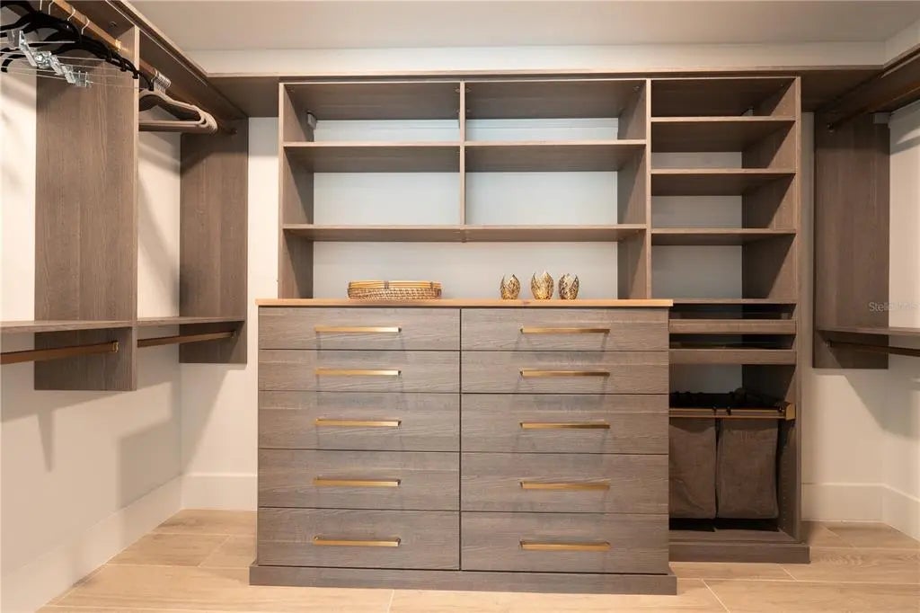 - Interior FeaturesCeiling Fan(s), Elevator, Living Room/Dining Room Combo, Open Floorplan, Smart Home, Solid Surface Counters, Solid Wood Cabinets, Split Bedroom, Stone Counters, Thermostat, Walk-In Closet(s), Window Treatments