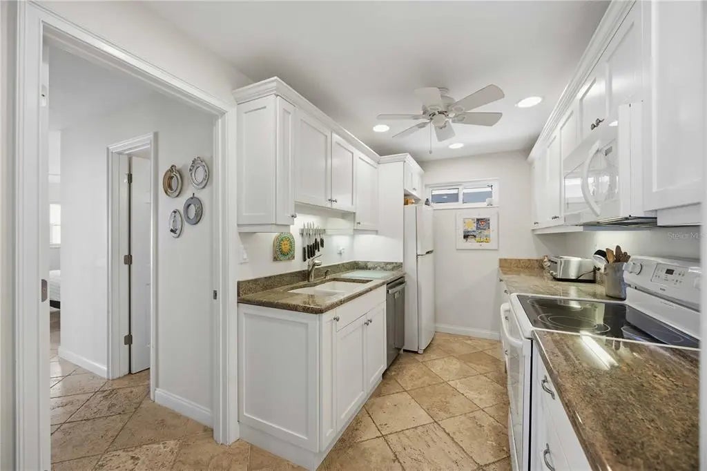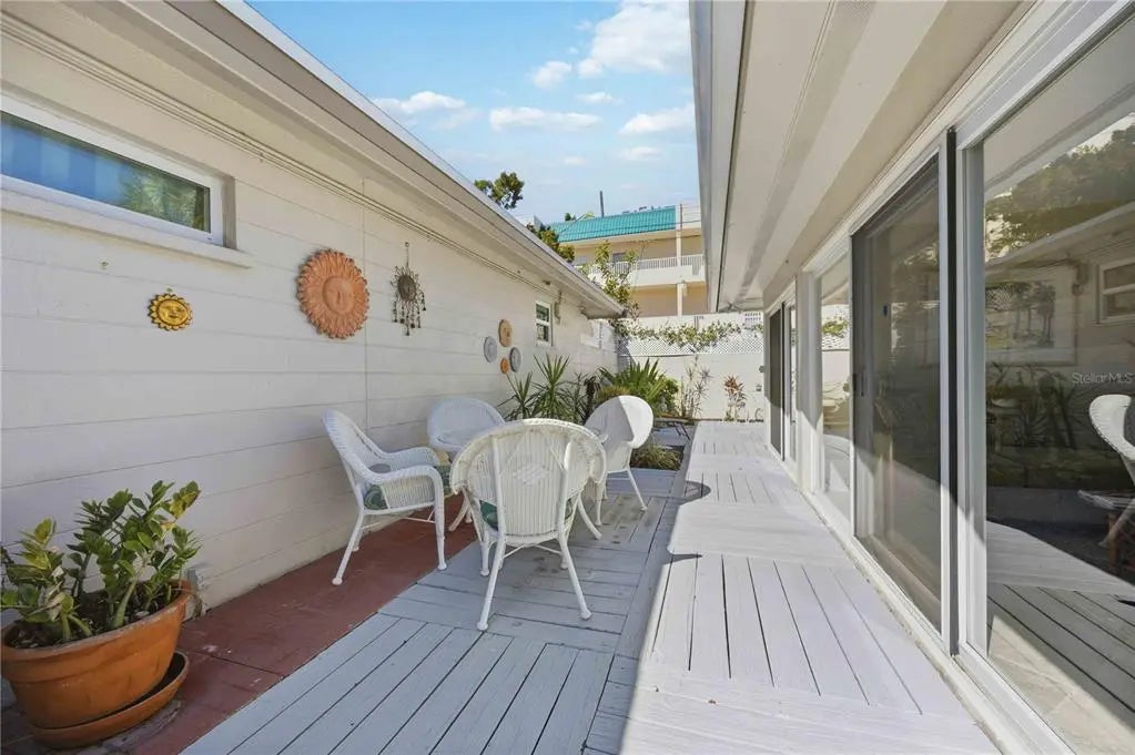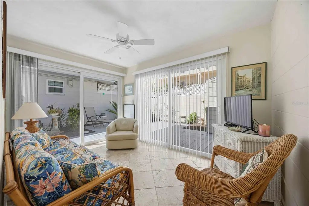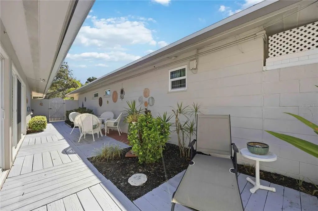 Perfect Snowbird Getaway! Mid Siesta Key, highly sought after, free-standing villa with it’s own private courtyard front, side and rear. Maintenance Free condo lifestyle that feels like a single family home. Situated in Provincial Gardens on a lushly landscaped and tree canopied street of only 26 units offering old Florida charm. This updated, Turnkey Furnished 2 bedroom + Den, 2 bath offers 1400sf. Spacious owner’s suite features a private patio; wall of closets; and ensuite bath. The updated kitchen offers abundance of cabinets and counterspace & newer appliances. The open floor plan offers tile floors throughout; abundance of sliding glass doors opening to your surrounding private courtyard; Florida room; updated baths; Full Size washer/dryer utility closet; new hot water heater 2023; New roof 2023; & Storage Shed 10x6. The crown jewel of this community is the enormous Bay front park with spacious paver patio where owners and their guests enjoy exquisite sunrises and picturesque sunsets while watching the dolphins, manatees, birds and boaters play in the intracoastal waterway. In addition, there is a new seawall, day dock with canoe/kayak launch, and plenty of room to try your luck at fishing. In addition, owners enjoy deeded beach access; beach chair usage; and jr. Olympic heated pool across the street at the Aloha Kai Community. It is also comforting to note that this community sustained no water damage from any recent hurricanes. This Beach to Bay Retreat is ready as a rental or personal winter getaway for you, your family and friends. This mid-key location is an easy Breeze Bus or Froggy Hop ride to Siesta Key Village; Tennis Courts; Public Beach; Grocery; and abundance of restaurants. Don't delay; these units are rarely available and sell fast.