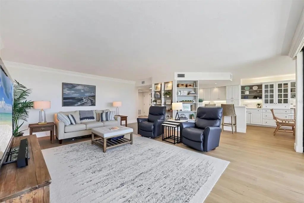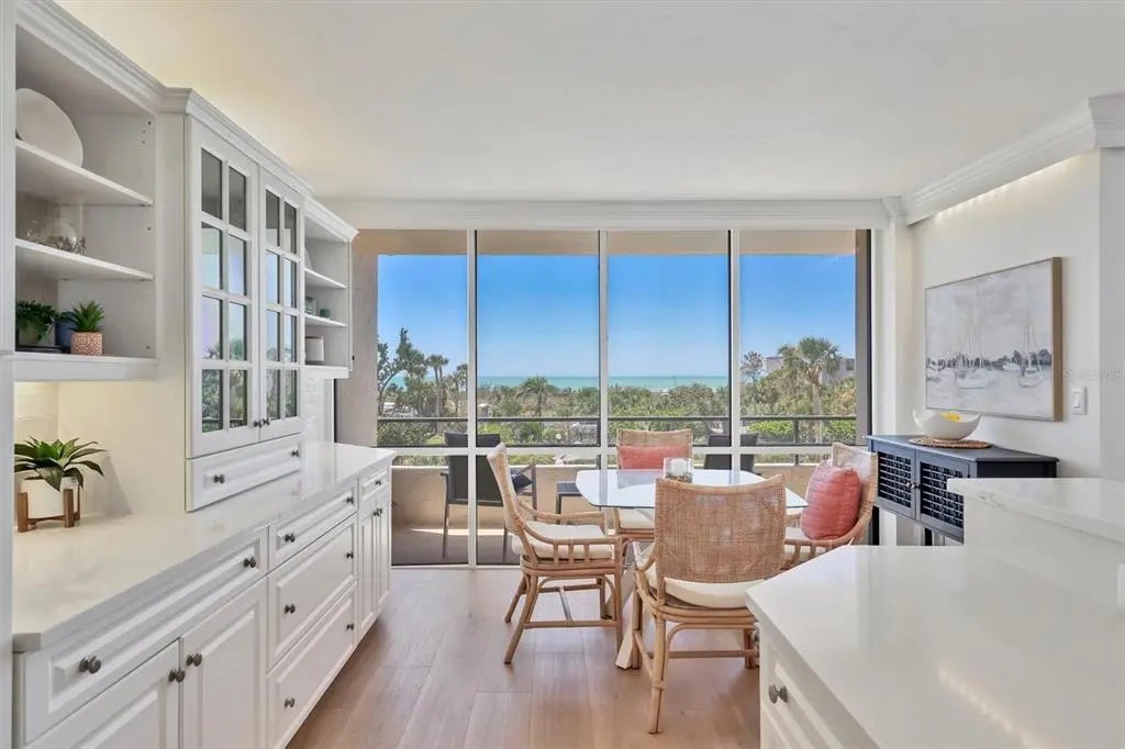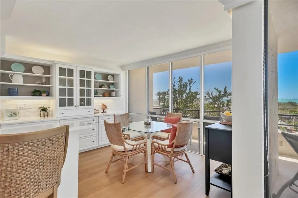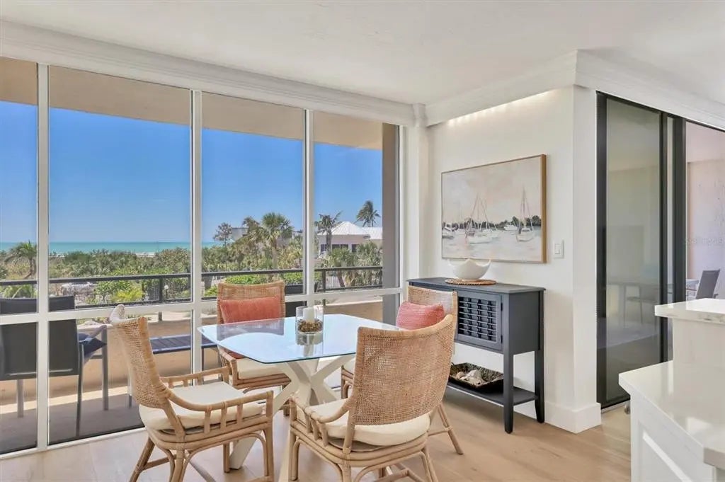 Step inside and unwind in this updated, turnkey luxury condominium offering breathtaking views of the #1 beach in the country. This is a rare opportunity to own a condominium in the vibrant heart of Siesta Key, just steps from the world-famous quartz sands of Siesta Key Beach and the lively charm of Siesta Key Village. Tastefully decorated and truly move in ready, this coastal retreat features a beautifully updated kitchen with custom cabinetry, granite countertops, tile backsplash, stainless steel appliances, crown molding, and thoughtful designer finishes. Luxury vinyl flooring flows throughout the condominium, creating a cohesive and low maintenance living space ideal for beachside living. Both bathrooms have been updated and showcase tile showers with elegant quartz sinks. Two spacious balconies provide the perfect setting to enjoy stunning Gulf sunsets, entertain family and friends, or take in the vibrant island atmosphere below. The island lifestyle is at your doorstep with easy access to local restaurants, live music, boutique shopping, and even a grocery store within .2 of a mile. Located in the iconic Terrace East, this 24-hour secure building offers a welcoming common area for residents and guests. The community has recently enhanced its curb appeal with updated landscaping and beautifully refreshed grounds, creating a true resort style ambiance. Residents enjoy a spacious sparkling pool with new pool furniture, an exercise room, a private tennis/pickleball court, and new stainless steel outdoor grills perfect for entertaining. Whether you are searching for a primary residence, second home, or vacation getaway, this condominium delivers luxury, comfort, and exceptional walkability in one of Florida’s most desirable beach destinations. Experience the best of Siesta Key living in an elevated retreat that combines iconic location, modern updates, and outstanding amenities.