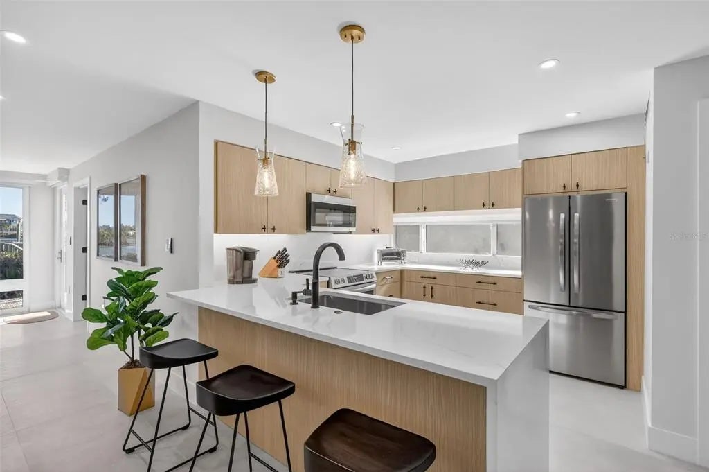 Experience effortless coastal luxury in this brand-new residence, thoughtfully designed and new built from the studs on in. Professionally staged to showcase the very best of waterfront living. Offered fully furnished and truly turnkey, this stunning 2-bedroom, 2-bath home allows you to move right in—or begin generating rental income—without lifting a finger. Perfectly positioned on the Intracoastal Bayfront, this home delivers sweeping water views where you can watch boats glide by throughout the day, enjoy glowing sunsets in the evening, or cast a line from the dock for a relaxing day of fishing. The open-concept layout is filled with natural light and enhanced by high-end finishes, coastal-inspired furnishings, and carefully curated décor that blends comfort with sophistication. The kitchen flows seamlessly into the living and dining areas, making it ideal for entertaining or quiet nights at home, while both bedrooms are generously sized and designed as private retreats. The primary suite offers a spa-like bathroom and tranquil ambiance, while the guest room provides comfort and privacy for visitors. Beyond the residence, the amenity-rich community elevates the lifestyle even further. Enjoy two beautifully maintained, heated swimming pools, a pickleball/tennis court, a fully equipped fitness center, and two expansive clubhouses with on-site rental facilities—perfect for hosting gatherings or accommodating guests. Best of all, you’ll have private beach access, with an 8 minute walk to the crystal sands of Siesta Key, offering the rare luxury of both bayfront living and effortless access to the Gulf. Whether you’re seeking a full-time residence, a vacation retreat, or a high-demand investment property, this exceptional bayfront home delivers new construction inside, turnkey convenience, and resort-style amenities in one remarkable package. This is coastal living at its finest—refined, relaxed, and ready for you.