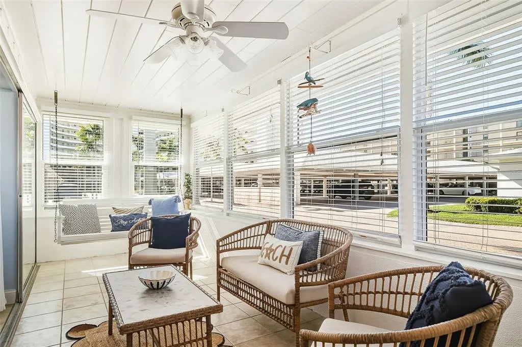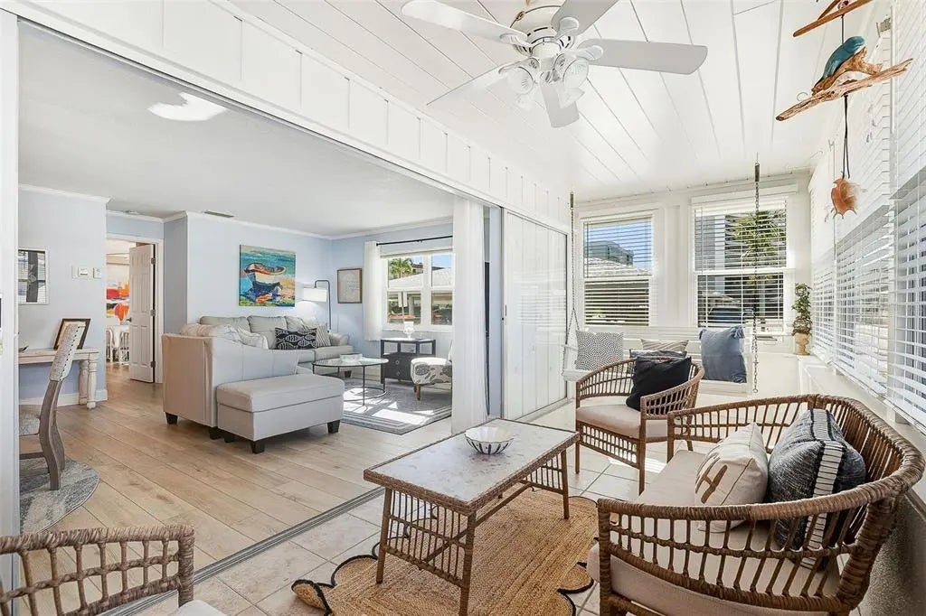 Everything is brand new in this beautifully renovated, turnkey furnished two bedroom, two bath end-unit villa offering an exceptional Siesta Key beach lifestyle just steps from the Gulf. The desirable split floor plan features spacious bedrooms, generous closets, and an open-concept living area filled with natural light, enhanced by a sun-lit Florida room. The updated kitchen is thoughtfully designed with granite countertops, a coordinating backsplash, soft-close cabinetry, and new stainless steel appliances. The primary suite offers a wall-to-wall closet, transom window, and sliding glass doors opening to the Florida room. Additional highlights include luxury vinyl plank flooring, all-new furnishings, and an attached one-car garage with washer and dryer plus ample storage for beach gear. Whether enjoyed as a private coastal retreat or a lock-and-leave rental opportunity, this residence truly offers the best of both worlds. Crystal Sands is a well-managed, financially stable beachfront community that has remained highly desirable since 1969 due to consistent upkeep and thoughtful renovations. The condominium comprises a collection of one, two, and three bedroom villas along with a Gulf-front high-rise tower, all set within beautifully maintained grounds. Residents and guests enjoy private beach access with umbrellas and loungers, two heated swimming pools, a clubhouse, on-site rental management, and night security, all just moments from Siesta Key’s renowned dining and shopping.