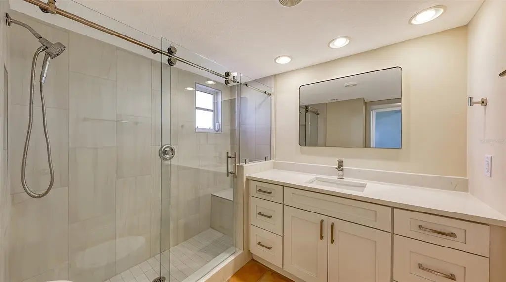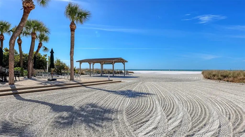 Located in the highly sought-after Gulf Haven Community, this beautifully renovated residence offers a rare opportunity to enjoy private beachfront living on the sugar-white sands of world-famous Siesta Key Beach, shared exclusively by just 50 owners. No crowds, no competition for space for your beach chair or blanket, just pure relaxation. With over 1,000 square feet of air-conditioned living area, the unit features a brand-new kitchen showcasing stainless steel appliances, shaker-style cabinetry, and elegant quartz countertops. The chef’s kitchen is complemented by an oversized living area with soaring vaulted ceilings and enlarged windows that flood the space with natural light. The fully renovated bathroom includes a custom glass-enclosed shower, new cabinets, and stunning countertops. Major upgrades such as a new HVAC system and water heater provide peace of mind and leave nothing for an owner to do but enjoy the beach. Additional features include an air-conditioned Florida room protected by exterior block construction, a spacious bedroom with a walk-in closet, second closet, and attic storage. Additionally, there is a fully enclosed carport with ample attic storage, parking for three vehicles, and an outdoor storage shed. Finally, there is a in residence laundry room with stacked washed and dryer, very rare for beach front condominiums. This ground floor residence is ideally located close to the sand while overlooking the lush grassy courtyard that leads directly to the beach. Residents enjoy access to a beachfront club room, community outdoor gathering area, and a sparkling community pool, delivering the ultimate Siesta Key lifestyle that you’ve been waiting for. A short ride to dining, shopping, and non-stop entertainment at either the north or south villages. Come and live the life you deserve in this ultimate beach getaway.