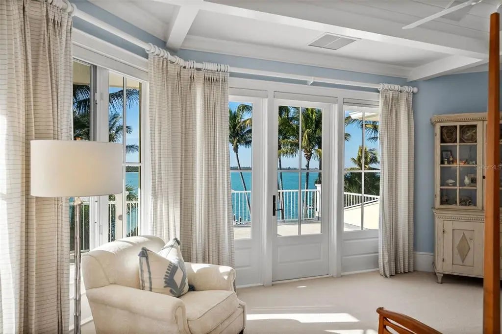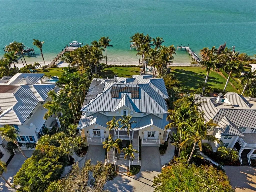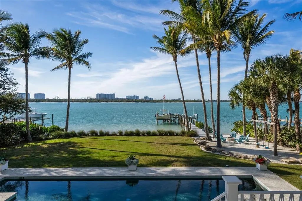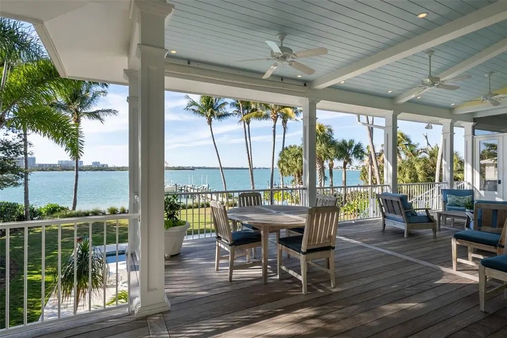 Discover a rare opportunity to enjoy pristine Gulf views, aquamarine waters, and a deep-water dock on the very North end of Siesta Key, just minutes to downtown Sarasota. One of Siesta Key’s most stunning and secluded waterfront sites — a residence offering a rare combination of historic significance, panoramic views of Big Pass, and exceptional structural integrity. Located approximately 200 feet south of civic leader Henry Higel’s early 20th-century Higelhurst Hotel, the pioneering developer’s beloved coastal breezes still beckon family and friends to enjoy swimming, water sports, boating, fishing, shoreline picnics, and direct, no-bridge access to the sparkling Gulf. Multiple covered porches and expansive windows provide front-row views of vivid sunsets and frolicking dolphins. Named for its pineapple stair finials symbolizing welcome, the Pineapple House was built in 2008 with an engineer-homeowner’s meticulous eye for detail. Constructed on pilings and grade beams, the home is set on a 31,293-square-foot lot and encompasses 6,596 square feet under air, with more than 13,000 total square feet. Designed by Diane Weinman with a refined Boca Grande aesthetic and built by ML Collingwood, the dwelling projects enduring quality, thoughtful engineering, and elevated coastal living. Enter through the impressive double doors to a sensual treat of symmetry and light. Main-level windows crowned with transoms frame views of the tropical blue sky. Walnut engineered flooring, Jerusalem stone, eight-foot doors, custom millwork, and generous closets enhance both functionality and beauty throughout. Scaled to feel both warm and elegant, the interiors are enriched with refined finishes and thoughtful architectural detailing. Living spaces encompass a formal dining room with butler’s pantry, living room, bookcase-lined library or sitting room, private office with built-in desk and cabinetry, dedicated home gym, and a flexible gathering room. A second primary or guest suite on the main level offers a private sitting area, breakfast bar, screened porch, and picture-perfect water views. An elevator conveniently serves all three floors. The chef’s kitchen anchors the main living areas with honed granite countertops, Sub-Zero appliances, custom Campbell cabinetry, and a walk-in pantry, opening to casual dining spaces and sun-filled outdoor porches. Upstairs, the primary suite is a tranquil retreat featuring a spa-inspired bath, oversized walk-in closet, shaded terrace, and outdoor shower. The expansive dock features two boat lifts: one 22,000-pound lift suitable for a 32- to 36-foot vessel and a second 10,000-pound lift. A humidity-controlled four-car tandem garage and a separate two-car garage accommodate up to six vehicles along with extensive marine and recreational gear. Solar panels and a 30kW generator underscore the home’s focus on energy efficiency and resilience. Outdoor living is highlighted by a 20,000-gallon heated saltwater lap pool surrounded by Shellcrete patios and Ipe decking. A perched beach with fire pit and swings welcomes gatherings overlooking Big Pass, while a 75-foot rear setback ensures privacy within a lushly landscaped yard. Rich in history, resilient and luxurious, intimate and refined, this is Sarasota waterfront living at its most authentic and coveted.