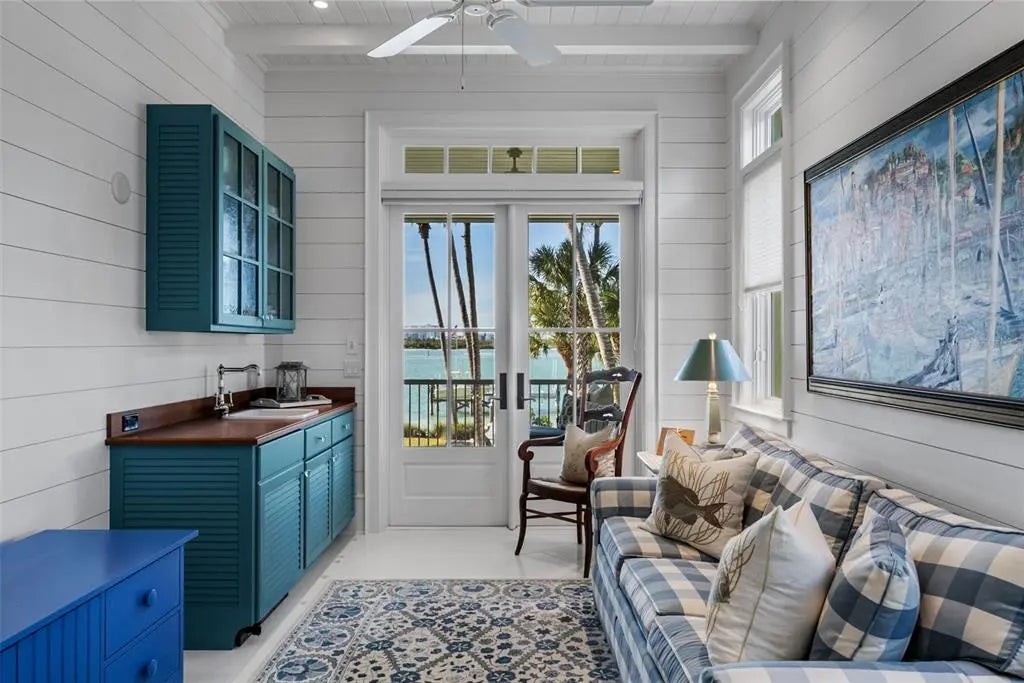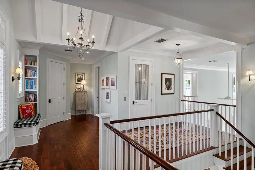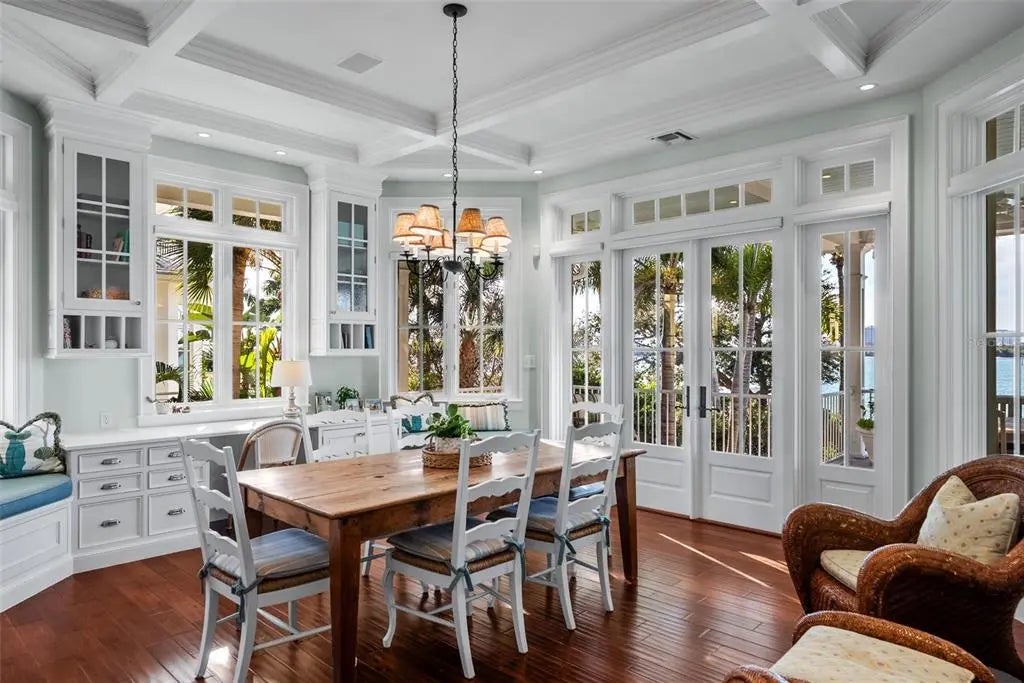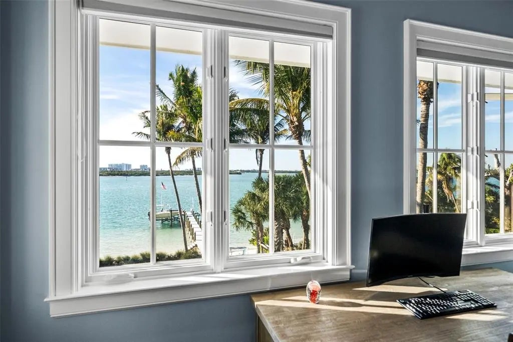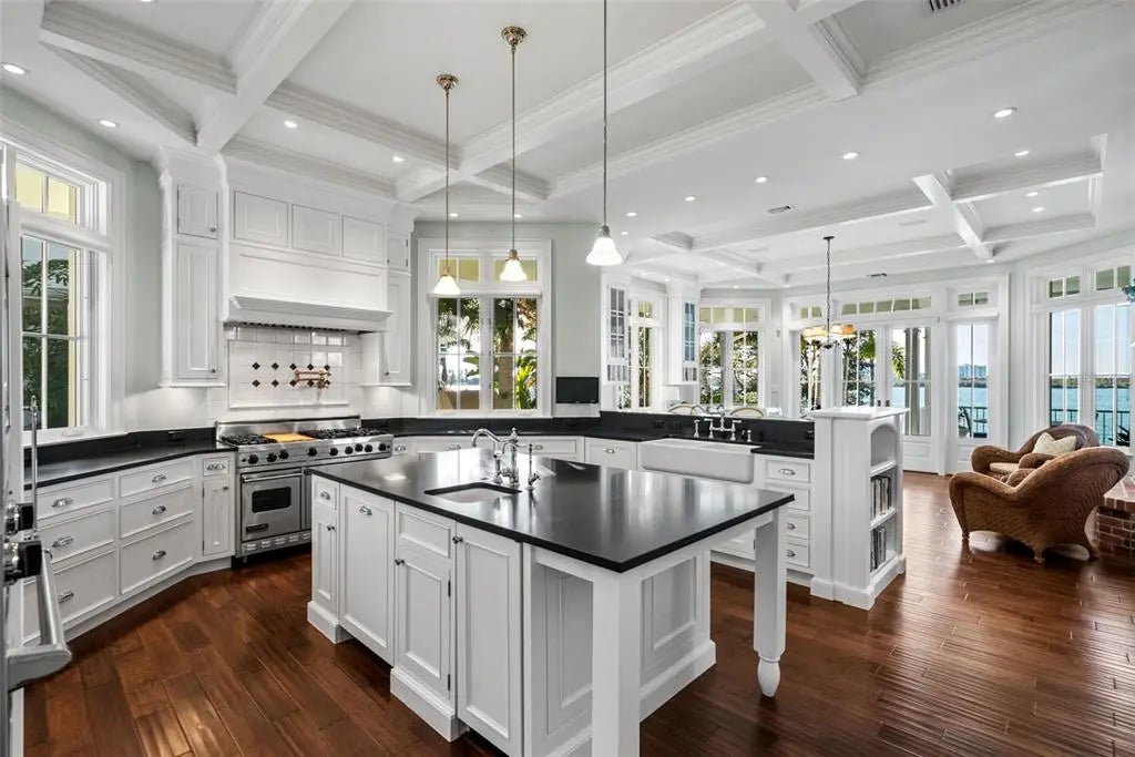 Discover a rare opportunity to enjoy pristine Gulf views, aquamarine waters, and a deep-water dock on the very North end of Siesta Key, just minutes to downtown Sarasota. One of Siesta Key’s most stunning and secluded waterfront sites — a residence offering a rare combination of historic significance, panoramic views of Big Pass, and exceptional structural integrity. Located approximately 200 feet south of civic leader Henry Higel’s early 20th-century Higelhurst Hotel, the pioneering developer’s beloved coastal breezes still beckon family and friends to enjoy swimming, water sports, boating, fishing, shoreline picnics, and direct, no-bridge access to the sparkling Gulf. Multiple covered porches and expansive windows provide front-row views of vivid sunsets and frolicking dolphins. Named for its pineapple stair finials symbolizing welcome, the Pineapple House was built in 2008 with an engineer-homeowner’s meticulous eye for detail. Constructed on pilings and grade beams, the home is set on a 31,293-square-foot lot and encompasses 6,596 square feet under air, with more than 13,000 total square feet. Designed by Diane Weinman with a refined Boca Grande aesthetic and built by ML Collingwood, the dwelling projects enduring quality, thoughtful engineering, and elevated coastal living. Enter through the impressive double doors to a sensual treat of symmetry and light. Main-level windows crowned with transoms frame views of the tropical blue sky. Walnut engineered flooring, Jerusalem stone, eight-foot doors, custom millwork, and generous closets enhance both functionality and beauty throughout. Scaled to feel both warm and elegant, the interiors are enriched with refined finishes and thoughtful architectural detailing. Living spaces encompass a formal dining room with butler’s pantry, living room, bookcase-lined library or sitting room, private office with built-in desk and cabinetry, dedicated home gym, and a flexible gathering room. A second primary or guest suite on the main level offers a private sitting area, breakfast bar, screened porch, and picture-perfect water views. An elevator conveniently serves all three floors. The chef’s kitchen anchors the main living areas with honed granite countertops, Sub-Zero appliances, custom Campbell cabinetry, and a walk-in pantry, opening to casual dining spaces and sun-filled outdoor porches. Upstairs, the primary suite is a tranquil retreat featuring a spa-inspired bath, oversized walk-in closet, shaded terrace, and outdoor shower. The expansive dock features two boat lifts: one 22,000-pound lift suitable for a 32- to 36-foot vessel and a second 10,000-pound lift. A humidity-controlled four-car tandem garage and a separate two-car garage accommodate up to six vehicles along with extensive marine and recreational gear. Solar panels and a 30kW generator underscore the home’s focus on energy efficiency and resilience. Outdoor living is highlighted by a 20,000-gallon heated saltwater lap pool surrounded by Shellcrete patios and Ipe decking. A perched beach with fire pit and swings welcomes gatherings overlooking Big Pass, while a 75-foot rear setback ensures privacy within a lushly landscaped yard. Rich in history, resilient and luxurious, intimate and refined, this is Sarasota waterfront living at its most authentic and coveted.