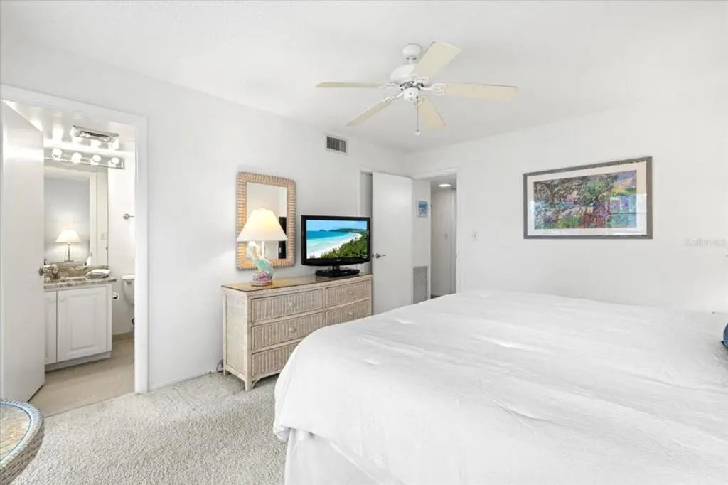 Experience the best of waterfront living in this beautifully updated and fully furnished second-floor condo in the highly sought-after Siesta Harbor community. This TURNKEY 2-bedroom, 2-bath residence offers stunning canal and marina views and a prime location just steps from direct beach access across the street through Crescent Arms. Immaculately maintained and move-in ready, the condo features an enclosed lanai with horizontal sliding windows, tasteful furnishings, and thoughtful updates throughout for comfort and relaxation. The spacious open-concept living and dining areas flow seamlessly into a modern kitchen showcasing white cabinetry, quartz countertops, stainless steel appliances, and ample storage. The primary suite includes a walk-in closet and a stand-up shower, while the enclosed lanai provides the perfect spot to enjoy morning coffee or evening cocktails year-round, with dolphins frequently seen playing in the marina. Siesta Harbor is a vibrant 55+ waterfront boating community situated on its own canal and the main waterway of the Intracoastal Waterway. Boat slips may be available for vessels up to 30' (check with the office for availability). Residents enjoy resort-style activities, and amenities including a heated pool, outdoor jacuzzi and shower, indoor sauna, fitness room, shuffleboard court, fishing pier with seating on the ICW, and a beautifully renovated clubhouse with full kitchen, outstanding library, barbecue area with grills, and a full calendar of social activities. Additional highlights include FOB-accessed private beach access, FREE laundry on the 2nd, 3rd, and 4th floors, one designated covered carport parking space, ample guest parking, covered parking, an on-site manager, lush tropical landscaping, and a new roof (2025). Ideally located near the South Bridge, this community offers easy on-and-off access to the Key, is within short distance to restaurants and shops, and has the free Siesta Key trolley stopping right in front of the complex for easy access to Siesta Key Public Beach and Siesta Key Village. Whether you're watching boats drift by on the Intracoastal, crossing the street for unforgettable sunsets, or enjoying the active social lifestyle, this property is perfect as a vacation retreat, full-time residence, or investment opportunity. You deserve paradise!