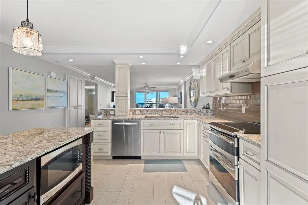 An unusual price for an unusual seaside residence. Completely renovated with stunning views from every window. Enjoy your morning coffee on the lanai and relish the downtown skyline as well as the Gulf of Mexico and Siesta Beach. Renovations include completely repainted, impact resistance windows, new interior doors, closet organizers and new front door. Casarina amenities include heated pool/spa, pickle ball/tennis courts, exercise room, gas grills, etc. This is worth a visit to see everything you can bring into your life.