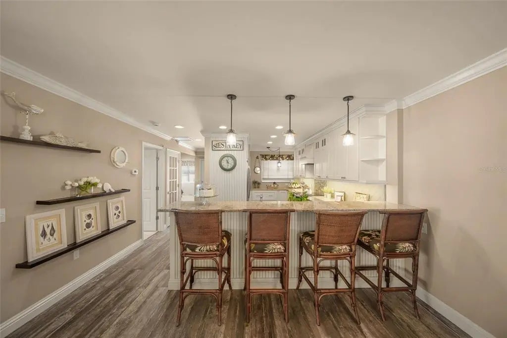 STUNNING FULL GULF VIEWS!..... STUNNING UPDATES THROUGHOUT!..... STUNNING SUNSETS!----You will be WOWED by this FURNISHED Siesta Key residence....just moments to the "baby powder" quartz white sands of TOP RATED Siesta Key Beach. This WELL-APPOINTED Spacious & PET FRIENDLY Two Bedroom/2 Bath condo has many desired UPDATES & FEATURES: Impact Windows/Sliders; Elevated Coastal Furnishings; Indulgent Primary Suite with Sumptuous Ensuite "Spa-Like" Bathroom; Custom Closets & BUILT-INS THROUGHOUT; Continuity of Materials & Finishes; In Unit Washer/Dryer; and a Large Kitchen with solid wood cabinetry; stainless appliances, glass tile backsplash & Generous amounts of Counter Space & Storage! You will ENJOY your morning coffee Dolphin Watching and your evening cocktails soaking in the Amazing Colors of Sunset over the Gulf.....Sea Village, conveniently located to dining/shopping/nightlife of the Main Village, features (2) gulfside Pools; fishing pier; Bike Storage & additional Storage Lockers. Perfect as Investment; Vacation or Year-Round Residence.