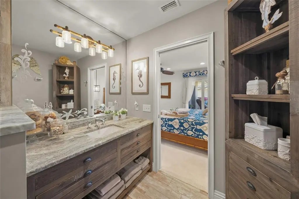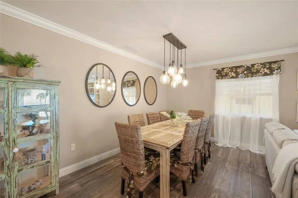 - Interior FeaturesBuilt-in Features, Ceiling Fan(s), Crown Molding, Living Room/Dining Room Combo, Open Floorplan, Solid Wood Cabinets, Split Bedroom, Stone Counters, Window Treatments