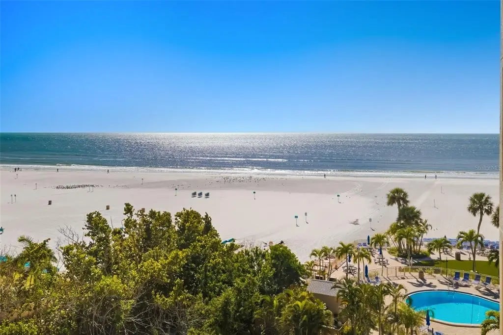 Welcome to an exceptional new offering in the highly sought-after Sarasota Surf & Racquet Club. Perfectly positioned on the 7th floor of the coveted tower building, this beautifully upgraded two-bedroom, two-bath residence captures expansive views and cooling Gulf breezes while delivering a refined, move-in-ready coastal experience. The thoughtfully renovated kitchen has been redesigned to enhance both form and function, opening sight lines to the living space and creating a true gathering hub. White cabinetry, quartz countertops, and a newly added kitchen island replace the former peninsula, while the removal of the original owner’s closet provides additional counter and storage space—ideal for your coffee bar, display of fine spirits or to lay out your coastal cuisine buffet style. Both bathrooms have been upgraded with matching quartz countertops, creating a cohesive and modern aesthetic throughout. The primary suite offers a spa-inspired bath with an expanded layout, a sleek stand-up shower with frameless glass doors, and a newly added water closet for enhanced comfort and privacy. A locked owner’s closet allows for easy “lock-and-leave” ownership, perfect for seasonal use or rental flexibility. The guest bedroom comfortably accommodates two queen beds and features a generous walk-in closet with existing washer/dryer vent access, ready for a future installation if desired. Ownership at Sarasota Surf & Racquet Club feels effortless and exclusive as it includes access to two heated swimming pools, a fitness center, BBQ pavilion and recreation hall. An active tennis community brings residents together for fitness, fellowship, and a little competitive fun. The onsite rental management team cares for your investment, with a rare and advantageous 3-night rental minimum policy, and organizes all of the reservations and turnovers while you enjoy your return on investment. Ideally poised on Siesta Key’s pristine shoreline, this residence offers a rare blend of elevated design, resort-style amenities, and effortless island living.