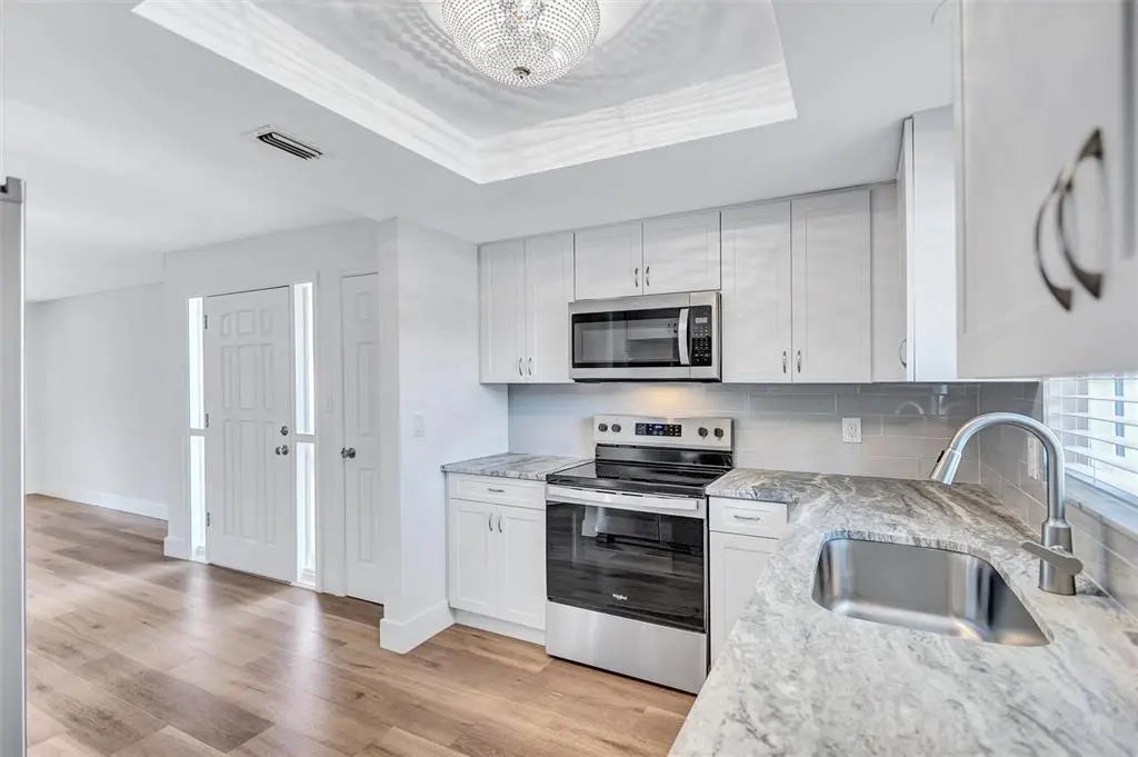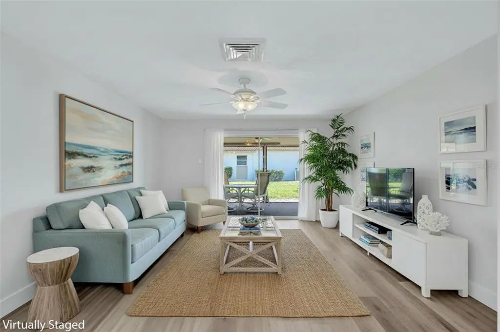 One or more photos have been virtually staged. Welcome to your maintenance free, dream beach retreat on Siesta Key! This charming and meticulously remodeled 2-bedroom, 2-bath villa offers the perfect blend of luxury and convenience, just a short stroll from the pristine sands of Crescent Beach. Enjoy cooking in a stunning kitchen featuring brand new quartz countertops, stainless steel appliances, and stylish light fixtures. Experience comfort year-round with newly installed HVAC and energy-efficient tankless water heater. Luxury vinyl panel floors flows seamlessly throughout, offering both durability and aesthetic appeal. Relax in the attached, screened-in lanai, complete with No-See-Um screen, aluminum framing and a new Hunter, wet-rated ceiling fan, perfect for warm island evenings. Both bathrooms have been beautifully remodeled providing a fresh, contemporary feel. Located just a few steps from the Clubhouse, heated pool, outside grilling areas and laundry facility. Walking distance to shops, restaurants and entertainment. Enjoy the easy, island lifestyle with access to the free trolley service to Siesta Key Village for even more shopping and dining experiences. Ideal for a second home, rental investment, or full-time residence. Don't miss this great opportunity to own a piece of paradise! Schedule your showing today and embrace the Siesta Key lifestyle!